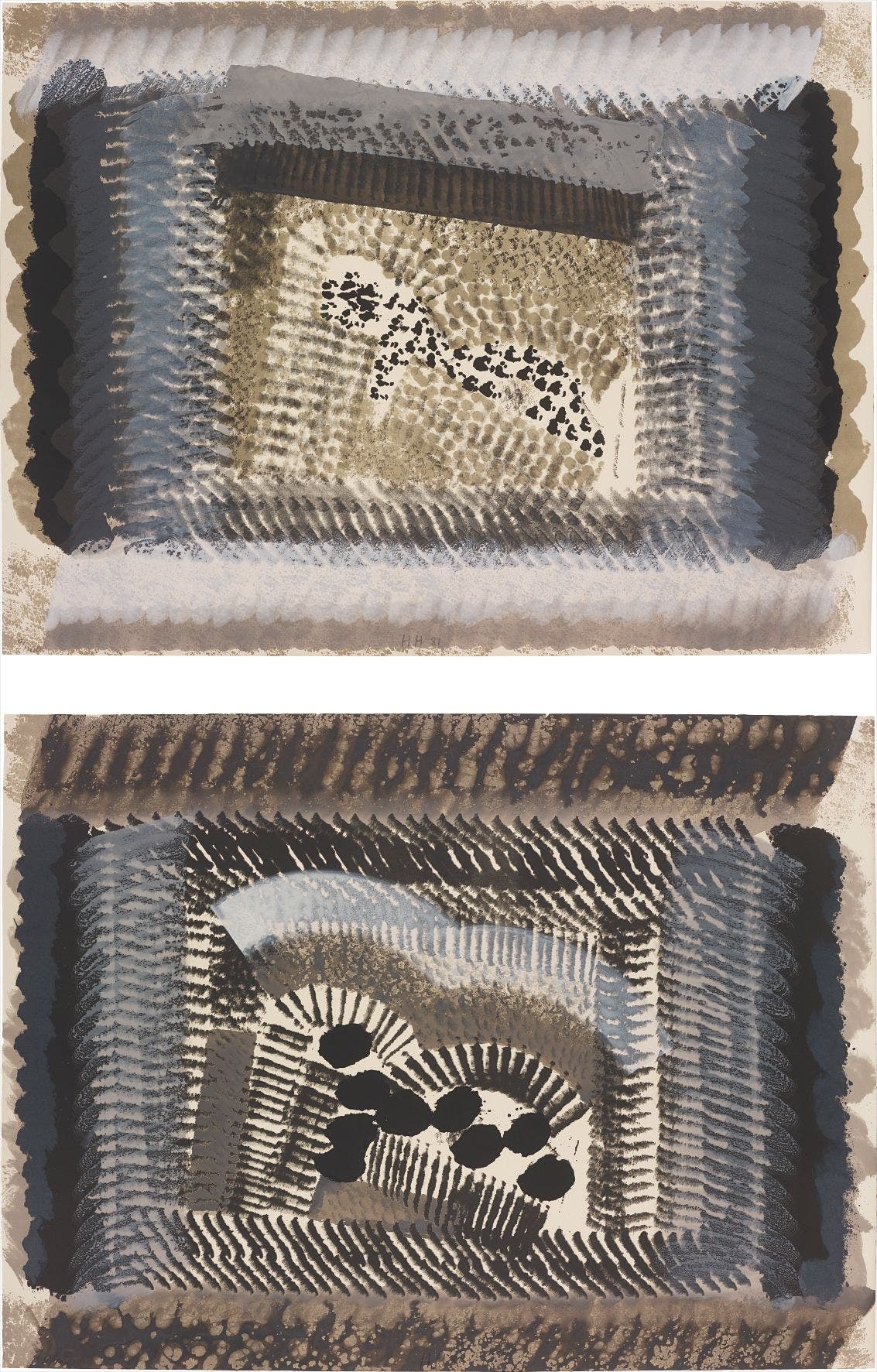 The seemingly casual, urgent quality of his paintings and prints belies a drawn-out process of making: it could take a year for Hodgkin to prepare to execute a single brushstroke. The resultant maximalist, saturated works on canvas, paper, wood and board can be intimately scaled and jewel-like, or oversized, opulent and theatrical. Whilst his early compositions have a collaged, geometric flatness, Hodgkin's later work (including etching and aquatint prints) increasingly incorporated more lush surface textures and complex, fluid patterns reminiscent of the Pahari miniatures from India, of which he was an avid collector.