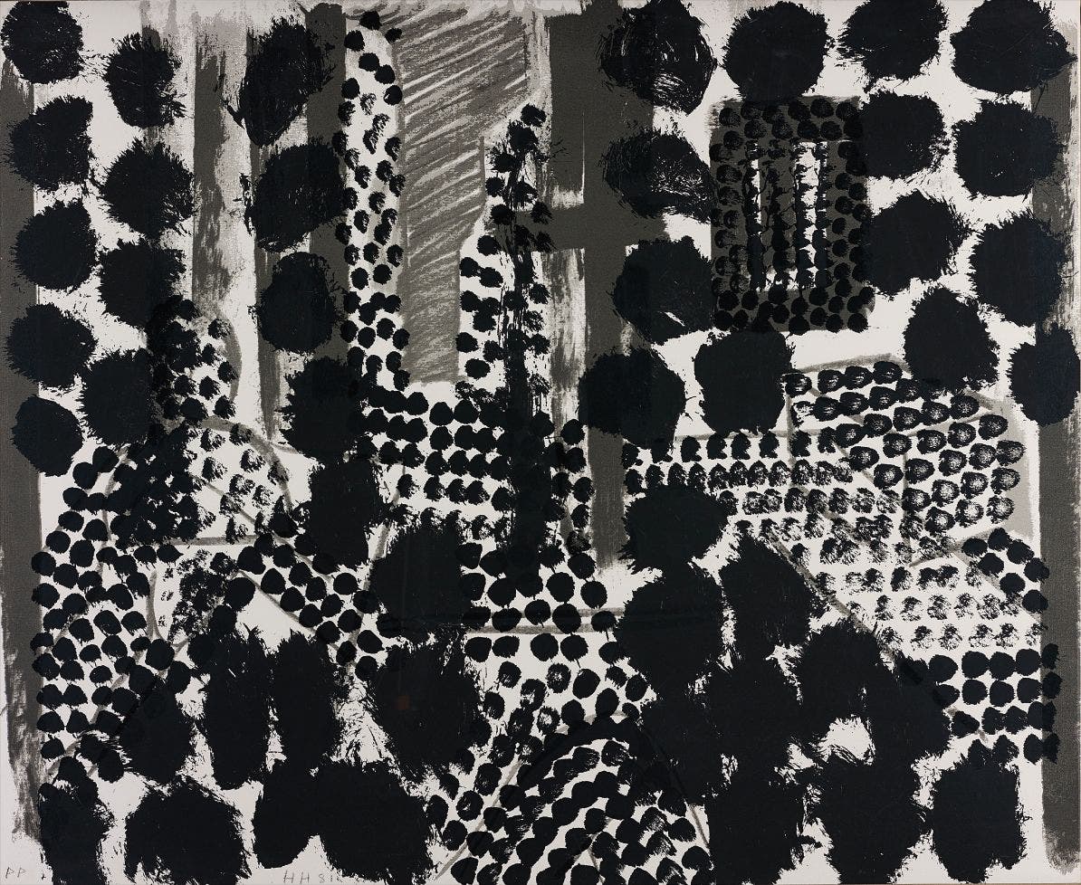 The seemingly casual, urgent quality of his paintings and prints belies a drawn-out process of making: it could take a year for Hodgkin to prepare to execute a single brushstroke. The resultant maximalist, saturated works on canvas, paper, wood and board can be intimately scaled and jewel-like, or oversized, opulent and theatrical. Whilst his early compositions have a collaged, geometric flatness, Hodgkin's later work (including etching and aquatint prints) increasingly incorporated more lush surface textures and complex, fluid patterns reminiscent of the Pahari miniatures from India, of which he was an avid collector.