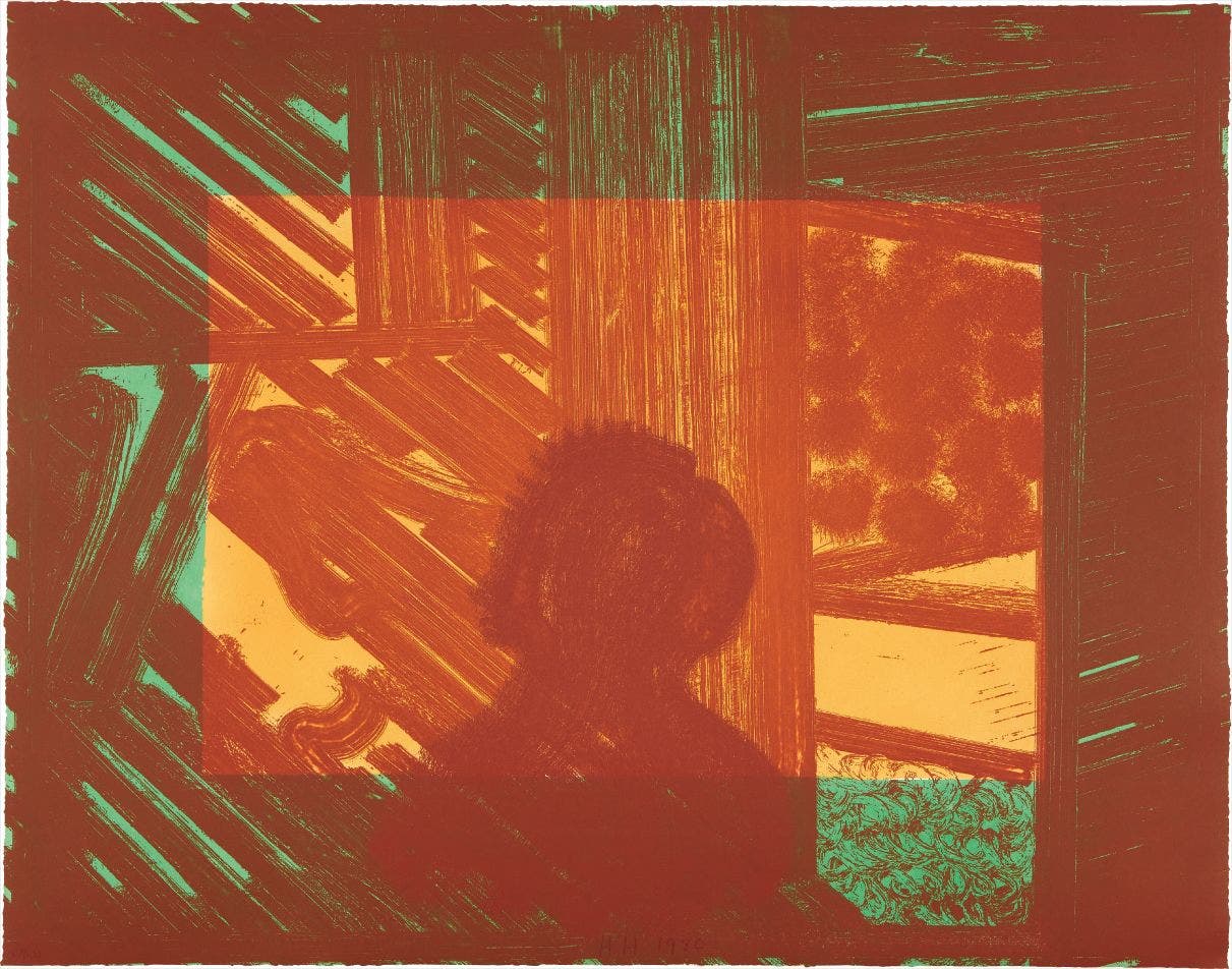The seemingly casual, urgent quality of his paintings and prints belies a drawn-out process of making: it could take a year for Hodgkin to prepare to execute a single brushstroke. The resultant maximalist, saturated works on canvas, paper, wood and board can be intimately scaled and jewel-like, or oversized, opulent and theatrical. Whilst his early compositions have a collaged, geometric flatness, Hodgkin's later work (including etching and aquatint prints) increasingly incorporated more lush surface textures and complex, fluid patterns reminiscent of the Pahari miniatures from India, of which he was an avid collector.