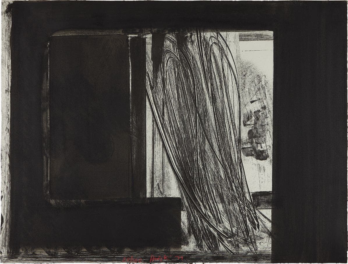 The seemingly casual, urgent quality of his paintings and prints belies a drawn-out process of making: it could take a year for Hodgkin to prepare to execute a single brushstroke. The resultant maximalist, saturated works on canvas, paper, wood and board can be intimately scaled and jewel-like, or oversized, opulent and theatrical. Whilst his early compositions have a collaged, geometric flatness, Hodgkin's later work (including etching and aquatint prints) increasingly incorporated more lush surface textures and complex, fluid patterns reminiscent of the Pahari miniatures from India, of which he was an avid collector.