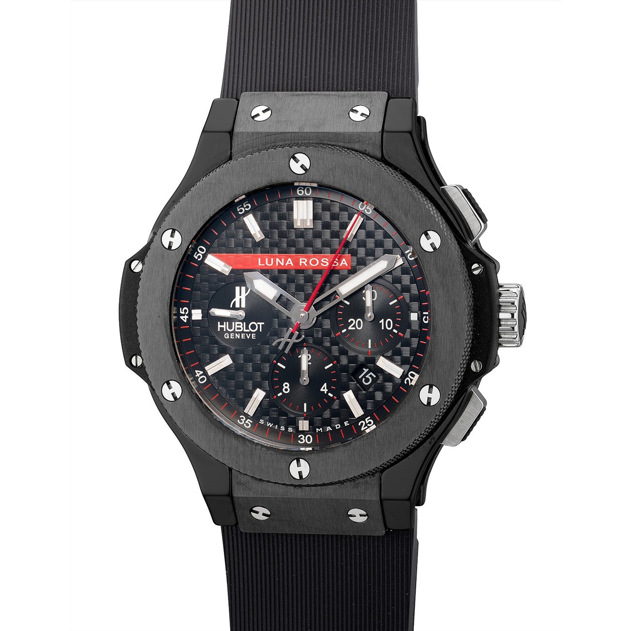 With an extensive synergy and approach to innovation, Hublot partnered with Luna Rossa in 2007 to create a limited edition series of the sought-after Big Bang model. With a 44mm diameter case dressed in blackened ceramic, the dial is further reminiscent of the iconic colors of the Italian race team featuring a carbon Kevlar dial with its iconic red stripe featuring the Luna Rossa logo.