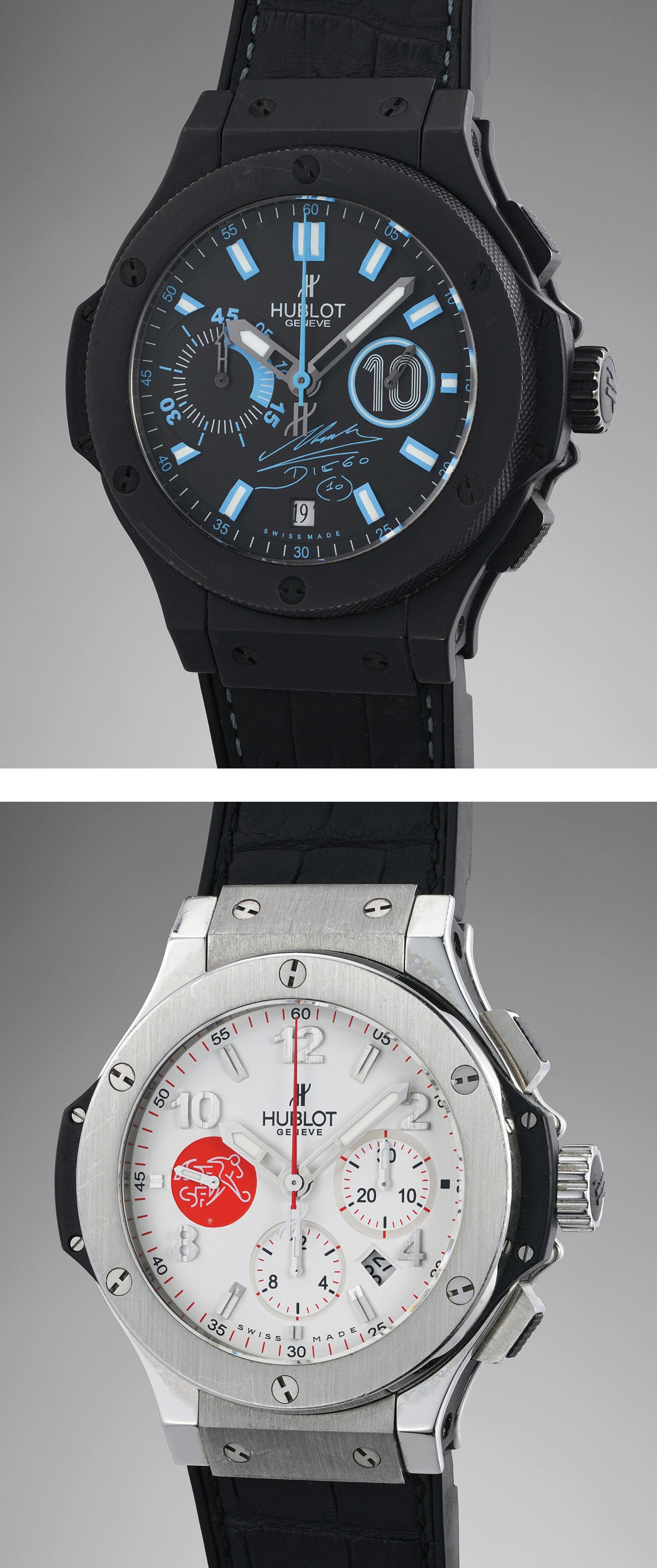A set of two attractive chronograph wristwatches, one in black ceramic made in tribute to Diego Maradona the other in stainless steel and ceramic made for the "Association Suisse de Football"
