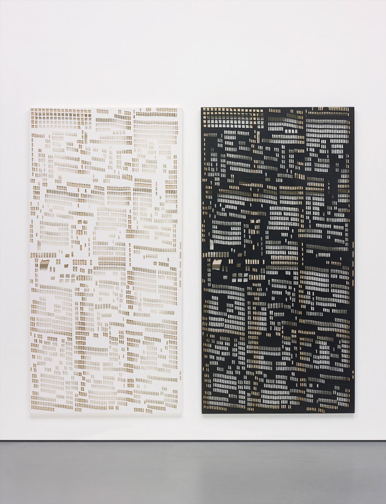 Scott-Douglas’ renowned diversity can be established within the present lot, Torn Cheque in particular as the focus sways towards an unusually personal aspect of the current finance market. Unlike an indistinguishable bank note that is traded and re-used, mark makings on the depiction recreate the unique coding of each designated cheque. Using laser cut and gessoed linen, the artist has hand-designed the individual pieces without the aid of assistants in order to mimic the distinctive and individual nature of this subject matter. Scott Douglas comments that there is 'something interesting to me about the way in which these notes (cheques and stamps) are physically marked when spent as to negate their values, whereas most currencies are re-circulated' (Katrib, Ruba 'Exposed Surfaces' Mousse no. 33 April-May 2012, pp. 138-141).
