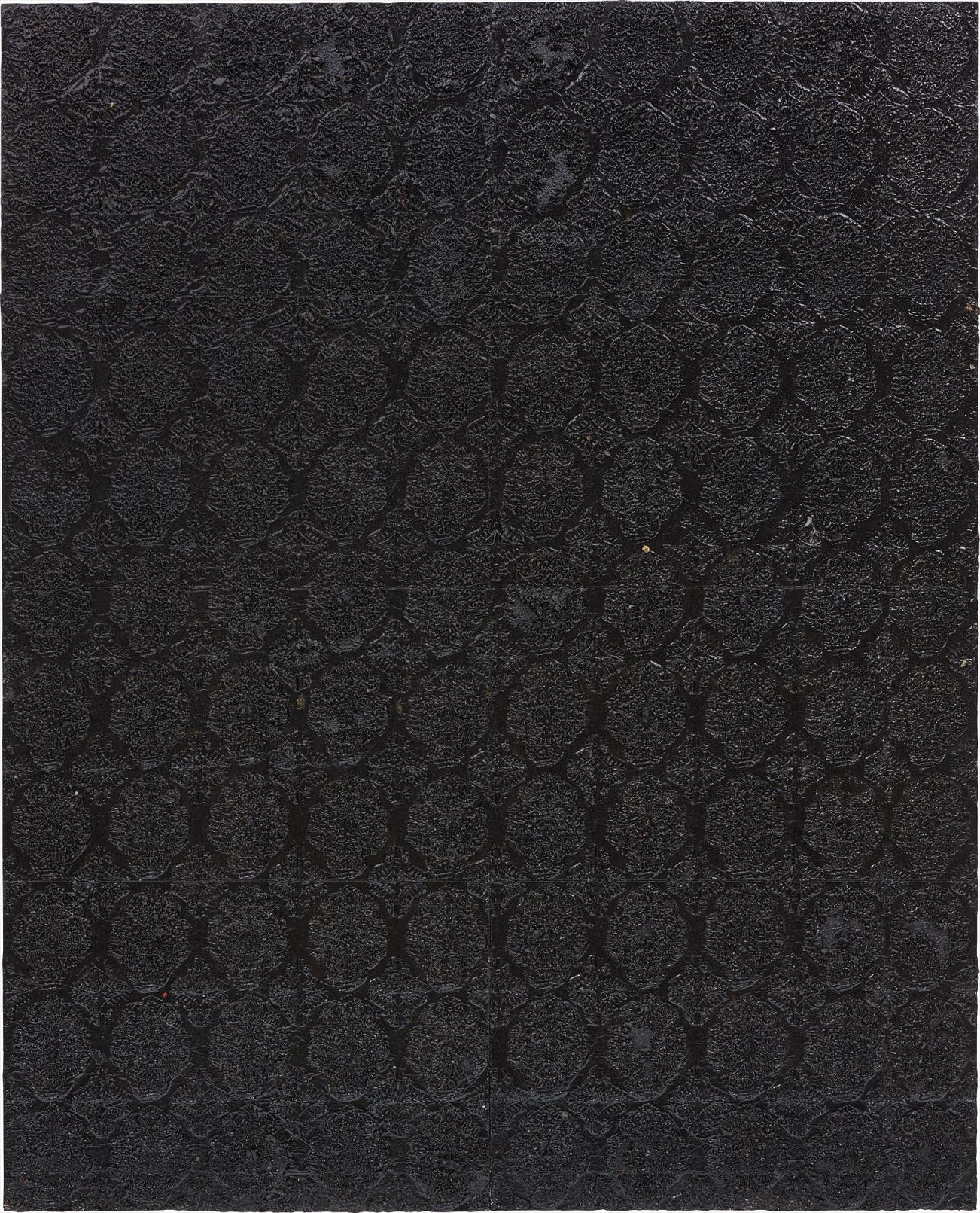 patina, aluminum coating, and oil on tar paper, mounted on wood