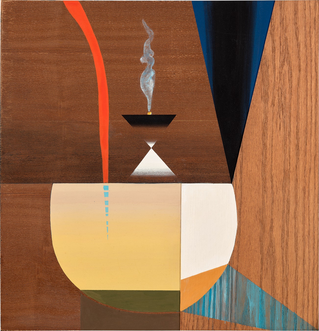 acrylic gouache and wood veneer on mahogany plywood