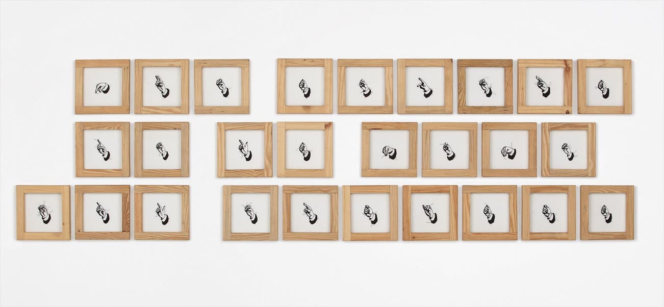 black thread on stretched silk in wooden frames, in 27 parts
