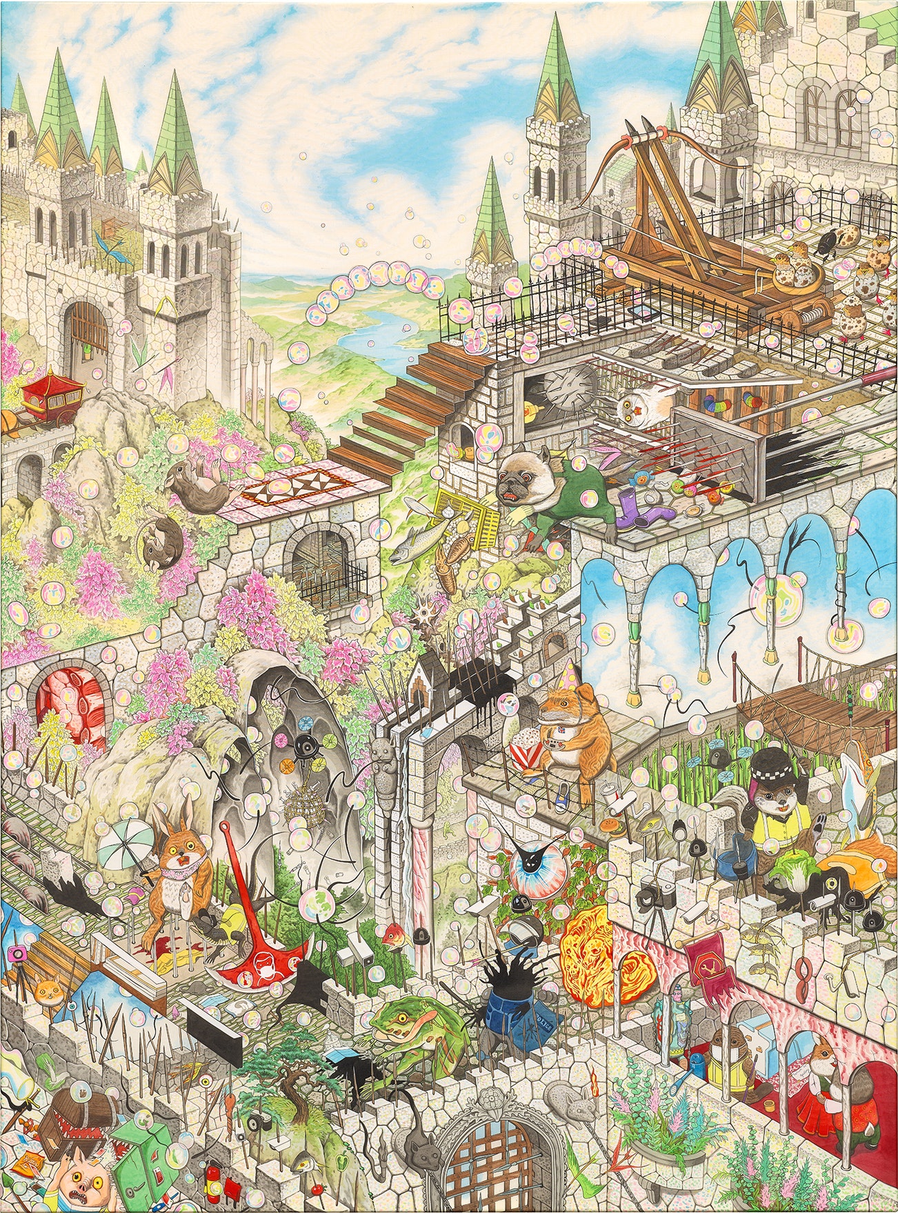 signed, titled and dated ""Castle Breakers" 2020 Hun Kyu Kim Hun Kyu Kim [in Korean]" on labels affixed to the stretcher