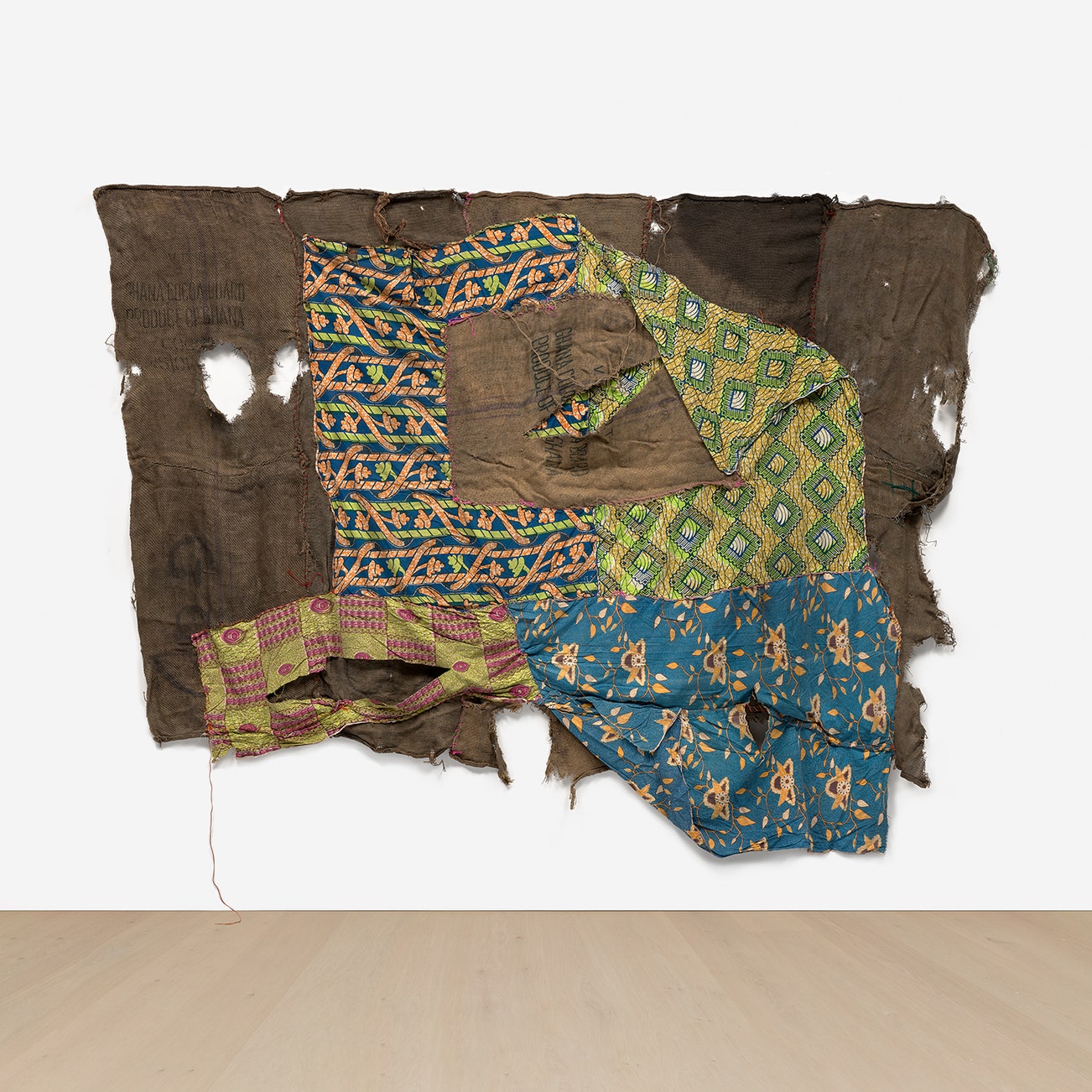 stitched wax print cloth and charcoal jute sacks