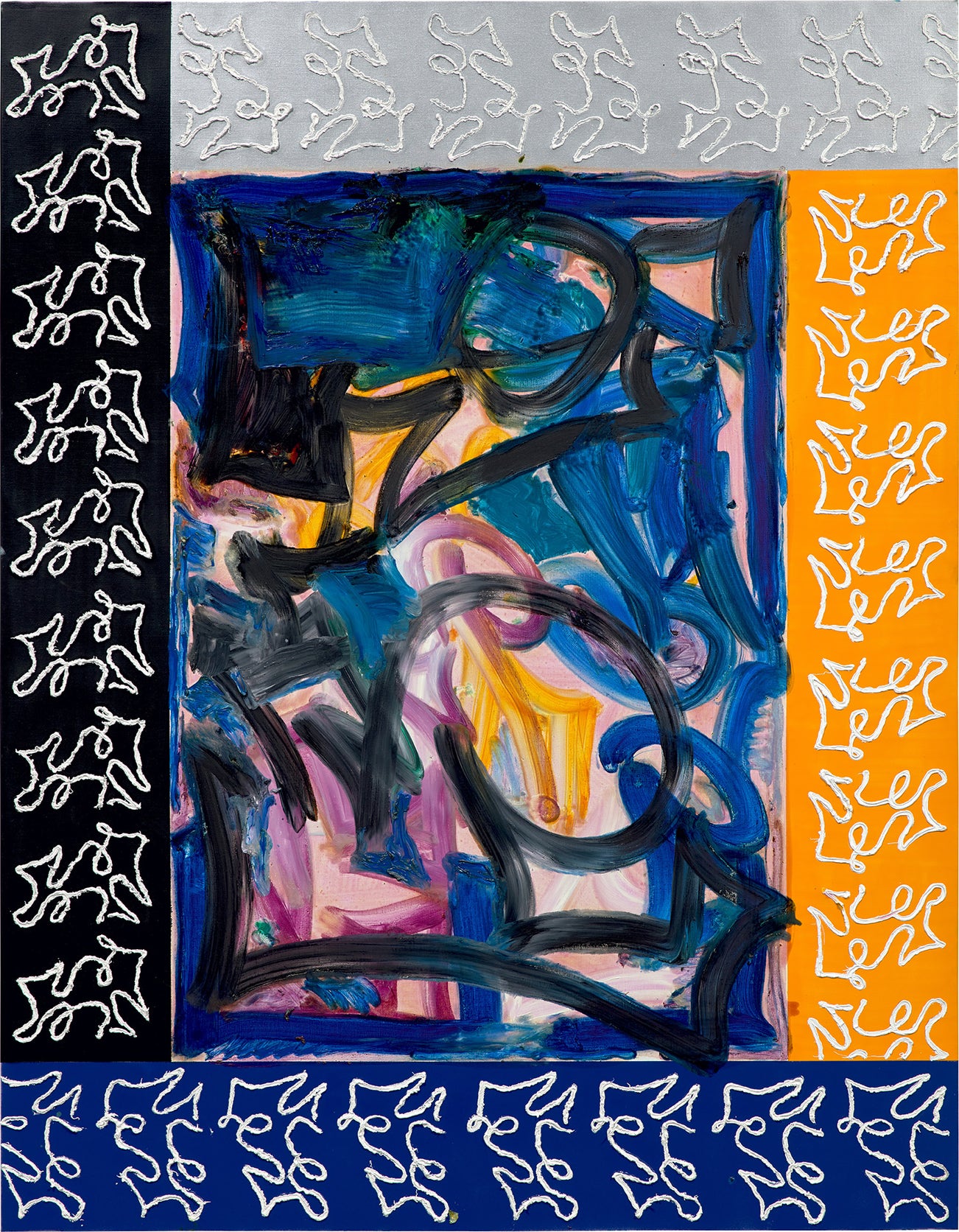 spray paint, oil, turpentine and puff paint on canvas