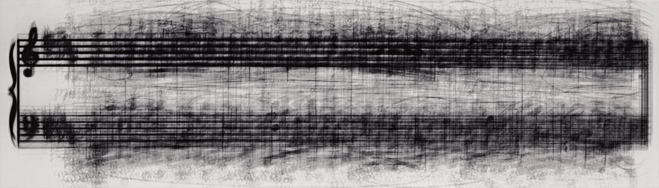 "every … Stave of Frederick Chopin’s Nocturnes for the Piano (2004) pays homage to a group of compositions which span the length of Chopin’s productive life and the evolution of his style. Sometimes it is not the full span of a life that I am interested in, but the accumulation of experience in late works by great artists and thinkers… I am searching for a kind of sublime." -Idris Khan