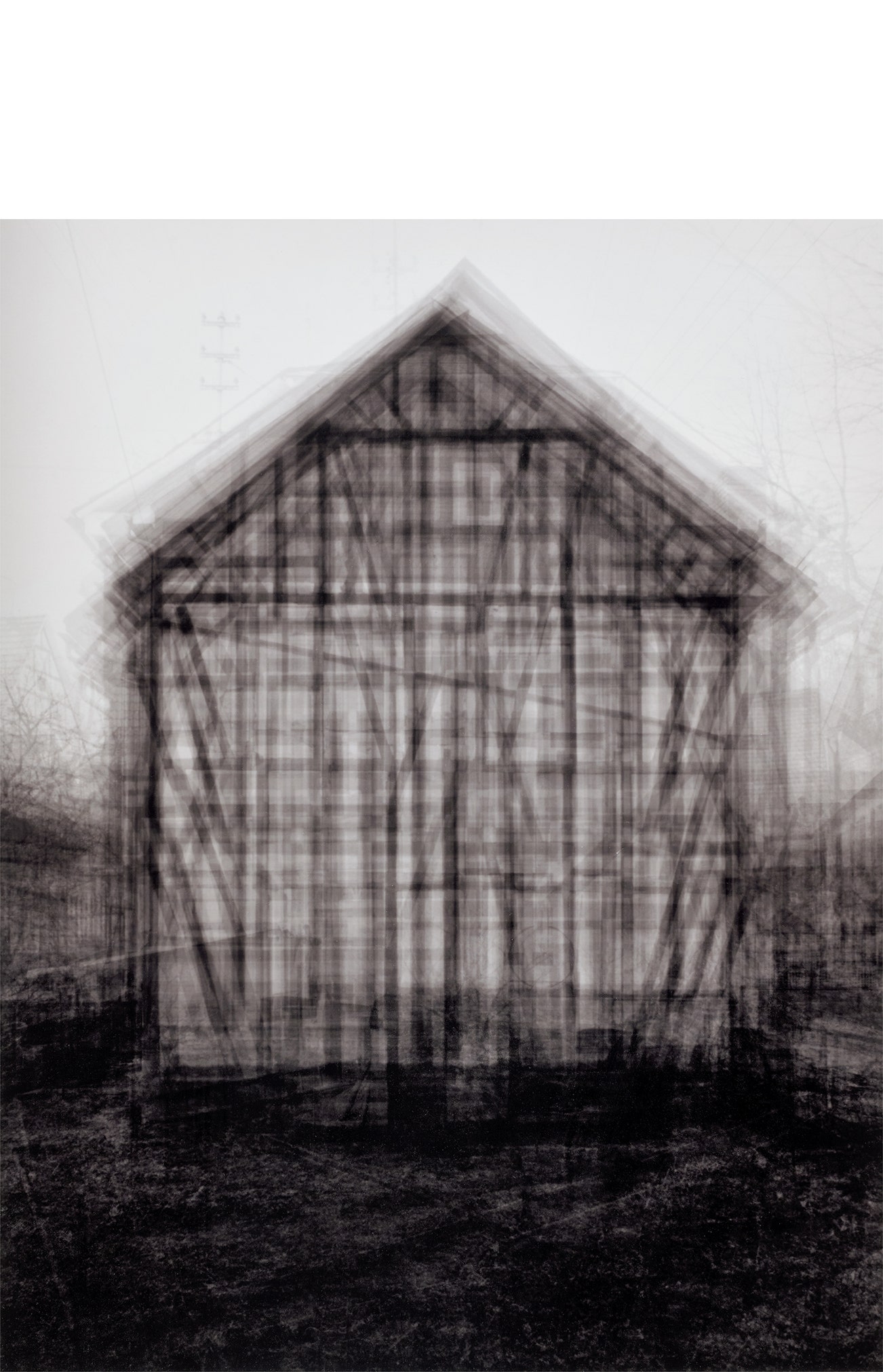 every…Bernd and Hilla Becher Gable Sided Houses, 2004, the work offered here, is an exceptional example of Idris Khan’s digitally layered composite photographs of known cultural subjects for which he first gained wide acclaim. Drawing inspiration from master photographers Bernd and Hilla Becher and their pursuit to create typologies of industrial-era structures, such as water towers and gas holders, Khan reimagines the series through a seemingly contrasting process of superimposing and condensing, resulting in entirely new works. The present image was created by scanning every Becher photograph of a Gable Sided Houses taken through the years and then digitally layering them.