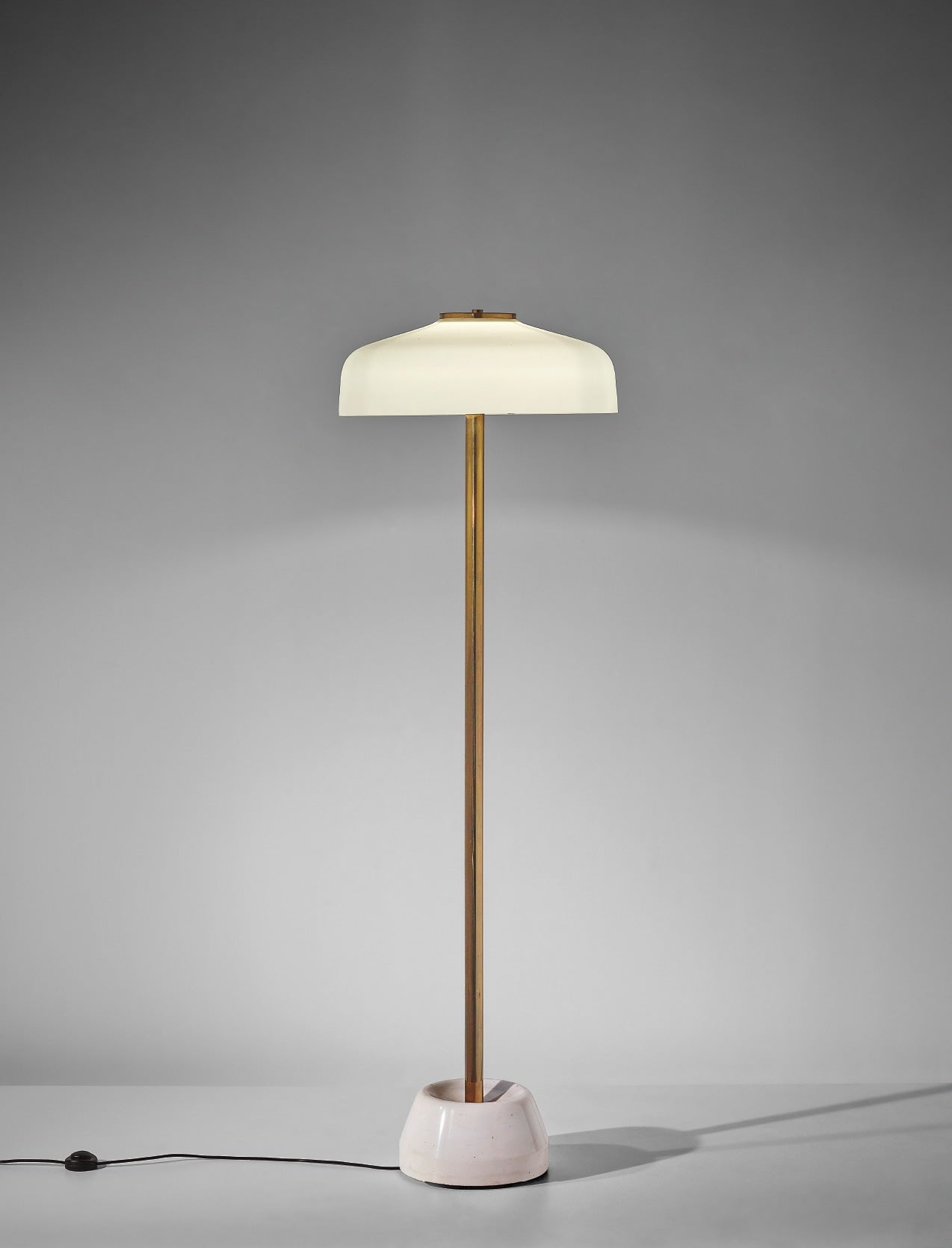 Marble, brass-plated steel, brass, painted aluminium, opaque glass.