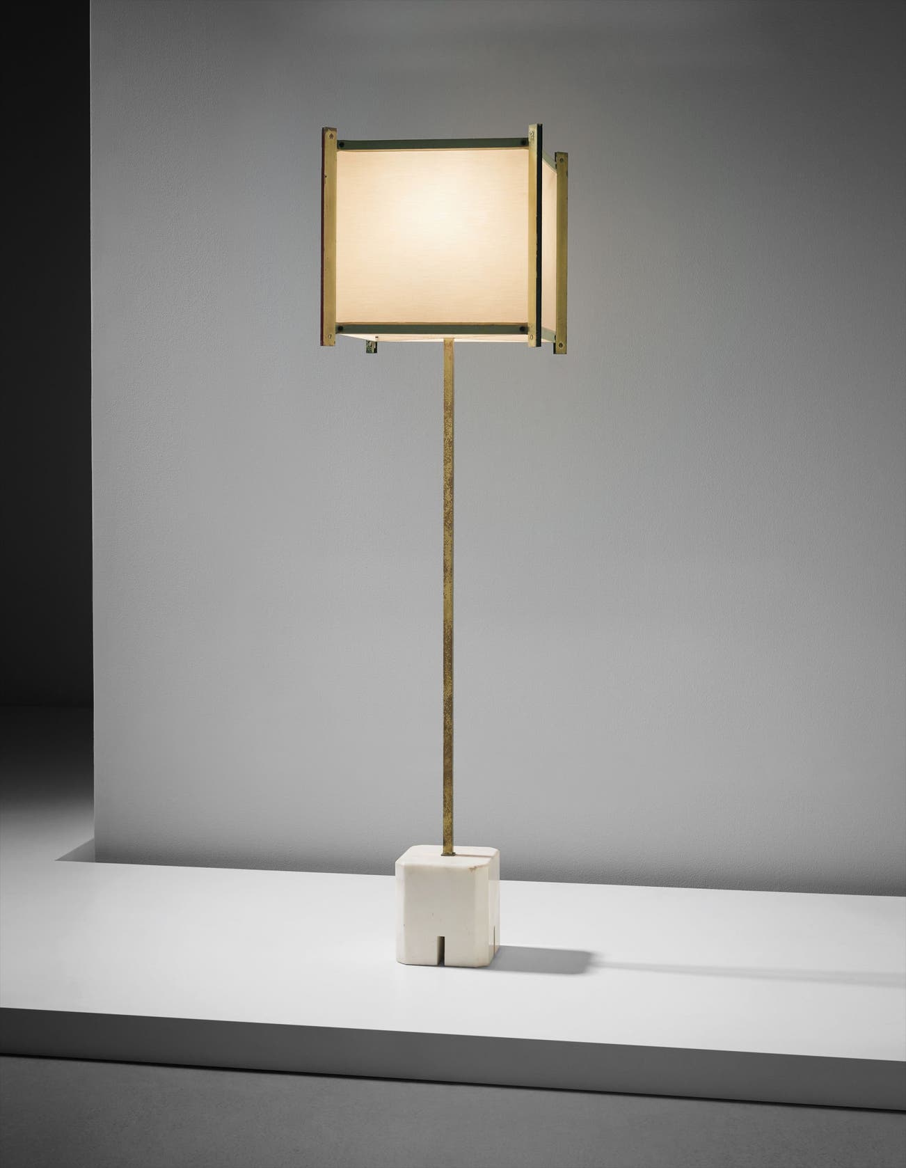 Marble, brass, painted metal, fabric.