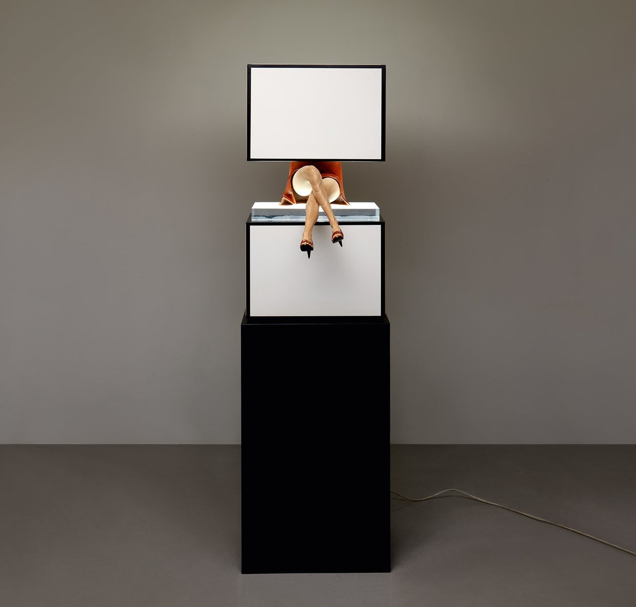 wood sculpture, acrylic, cardboard and light box