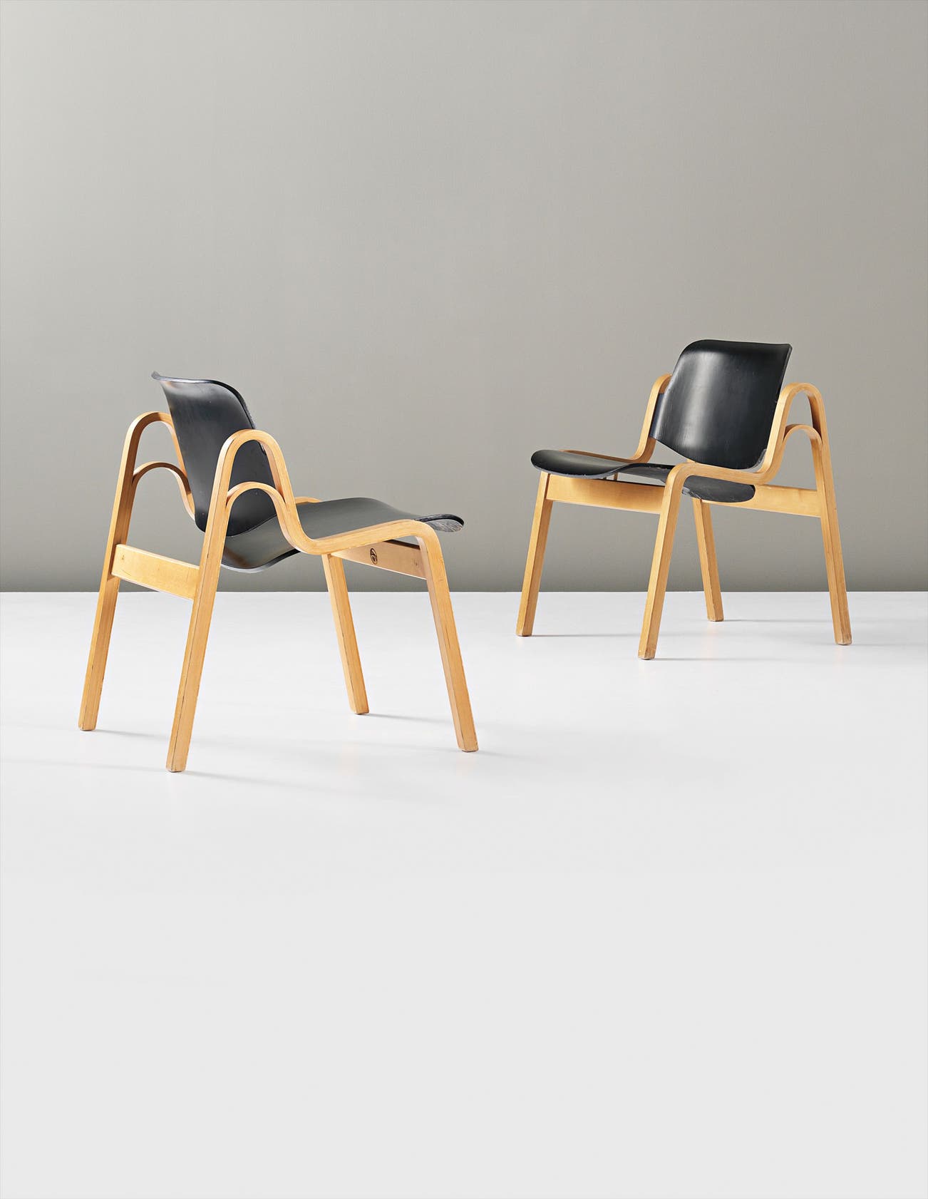 Manufactured by Wilhelm Schauman Ltd., Finland. Underside of each chair branded and impressed with manufacturer's logo.