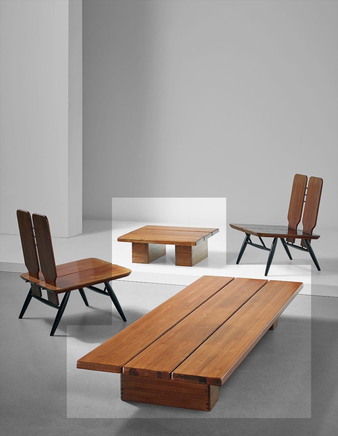 Low bench, model no. 2005 and coffee table
