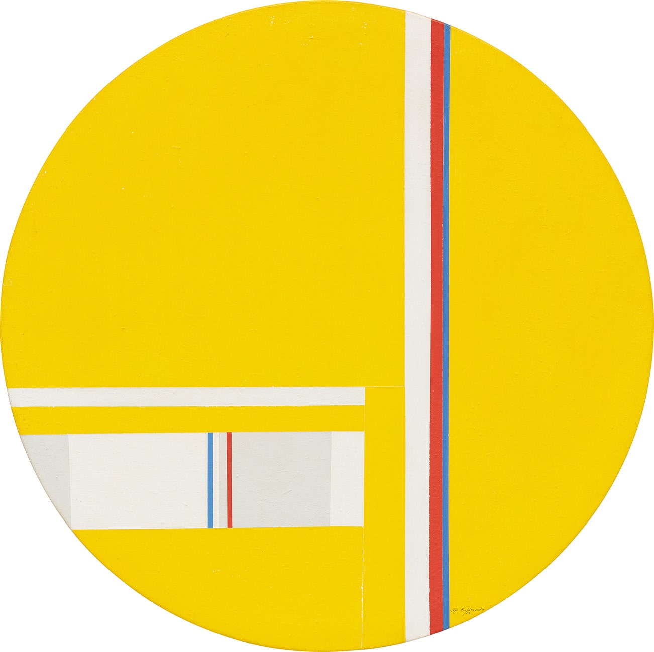 signed and dated “Ilya Bolotowsky 66” lower right; signed, titled and dated “”YELLOW TONDO” 1966, Ilya Bolotowsky” on the reverse