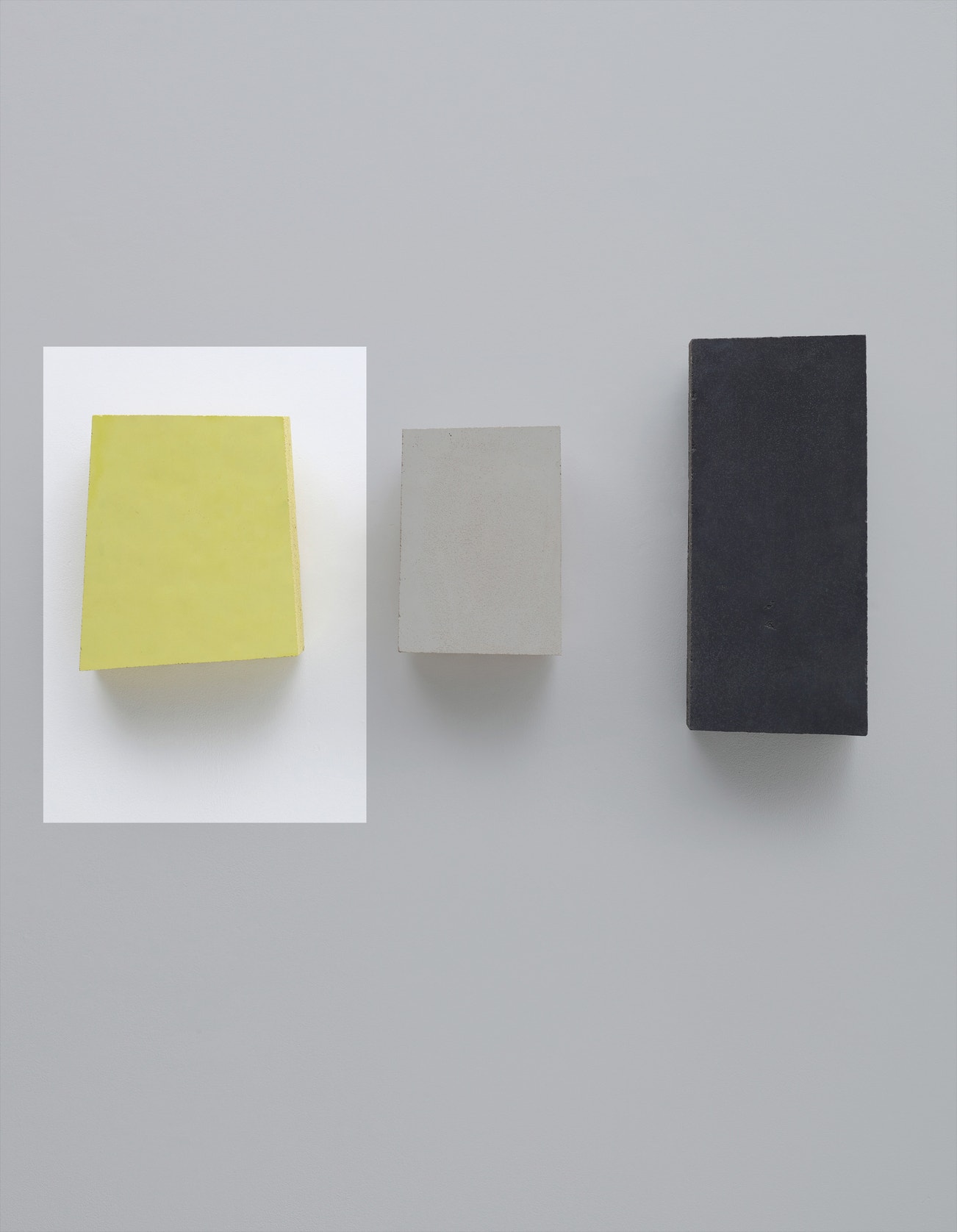Unique concrete sculpture painted in yellow, with wire loop for wall hanging on the reverse.