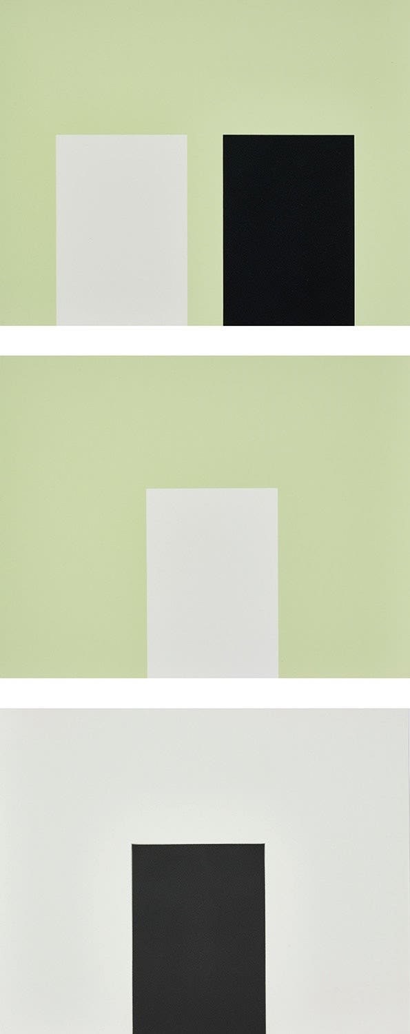The complete set of three prints including two screenprints with phosphorous pigment in colours, and one mezzotint, on BFK Rives paper, the full sheets.