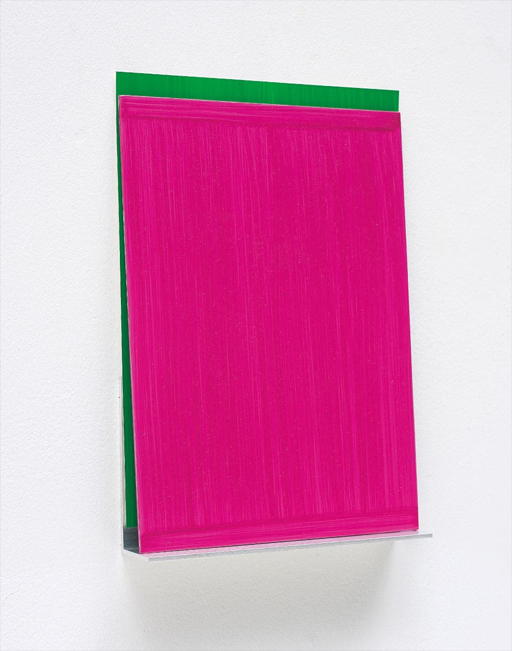 Acrylic on aluminium and plastic in pink and green respectively, with metal hanging unit,