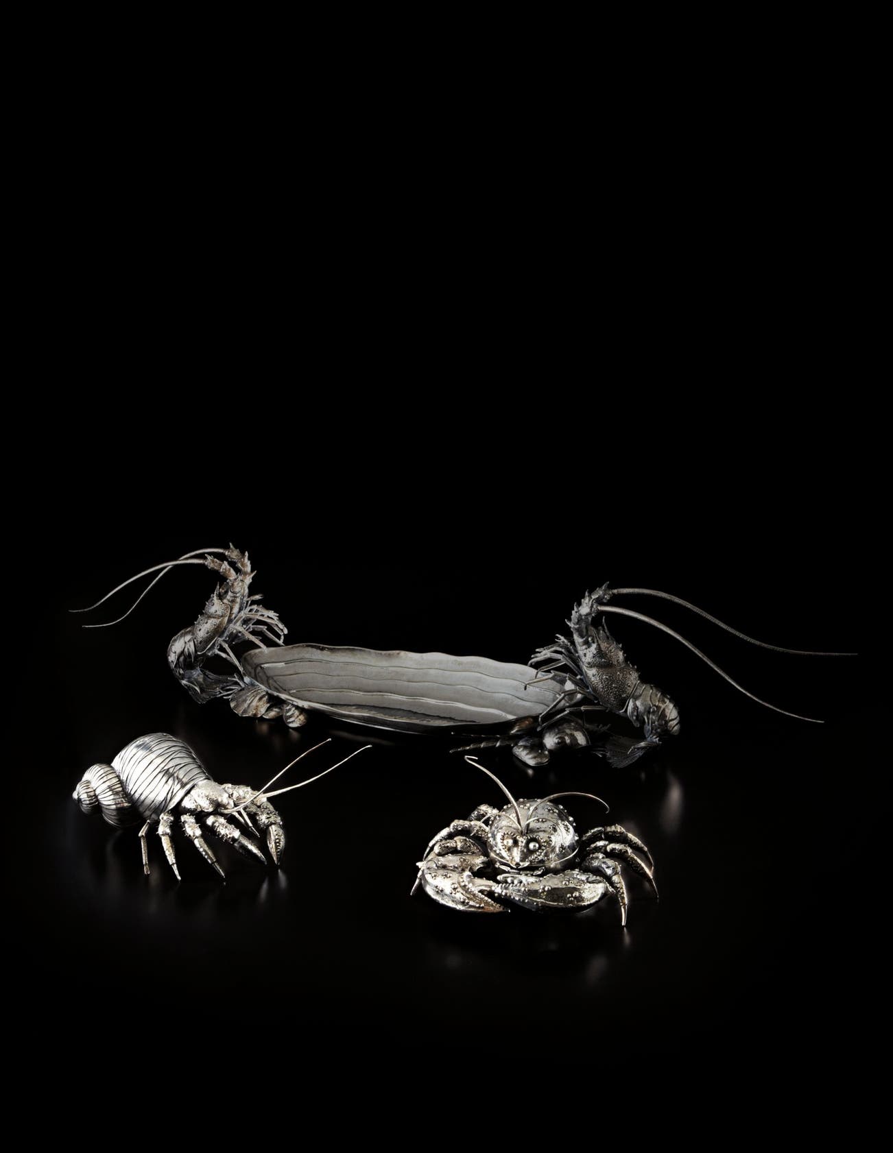 The hermit crab made by Fratelli Lisi e Figli, Florence. Each impressed with standard marks. Underside of hermit crab additionally impressed with maker's mark and Lisi.