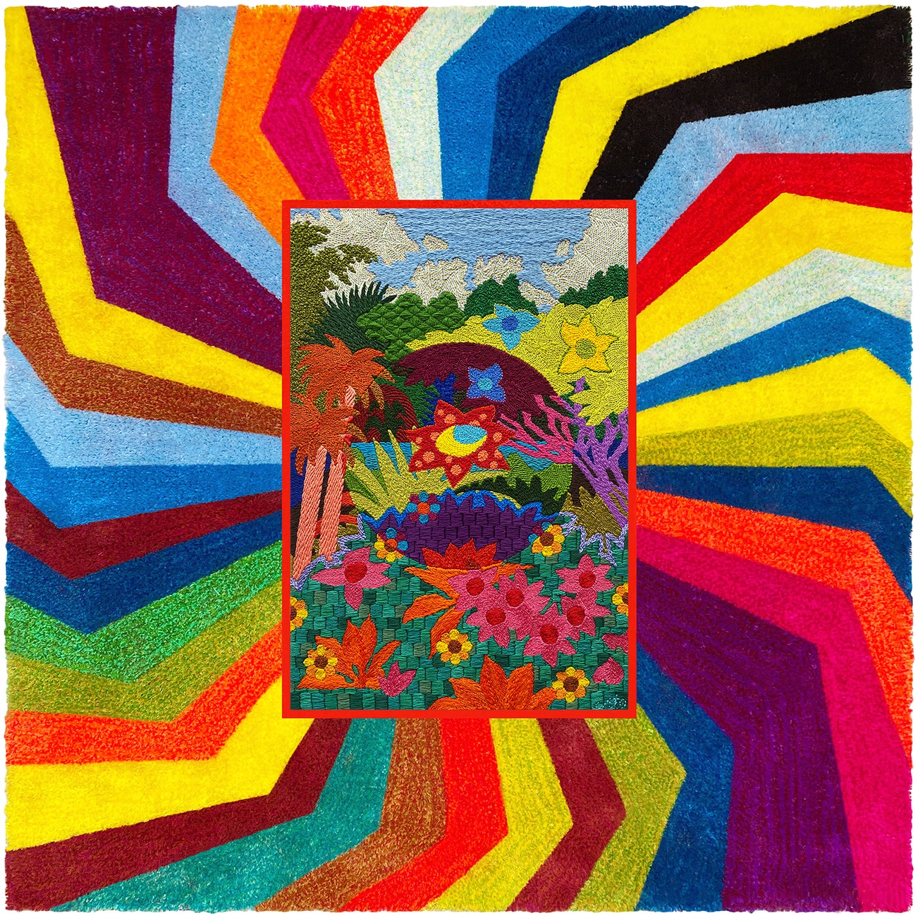 Indya Gokita celebrates the abundance of Filipino nature and spirit in this vibrant piece. Offering a portal into another realm, Gokita transports the viewer to a lush tropical landscape infused with rich sunlight, a light breeze and blossoming trees. Imploring us to open our windows and take in the pleasure of the natural world, she translates this environment into woven patterns, which depict the various colours and forms of the tropical jungle.