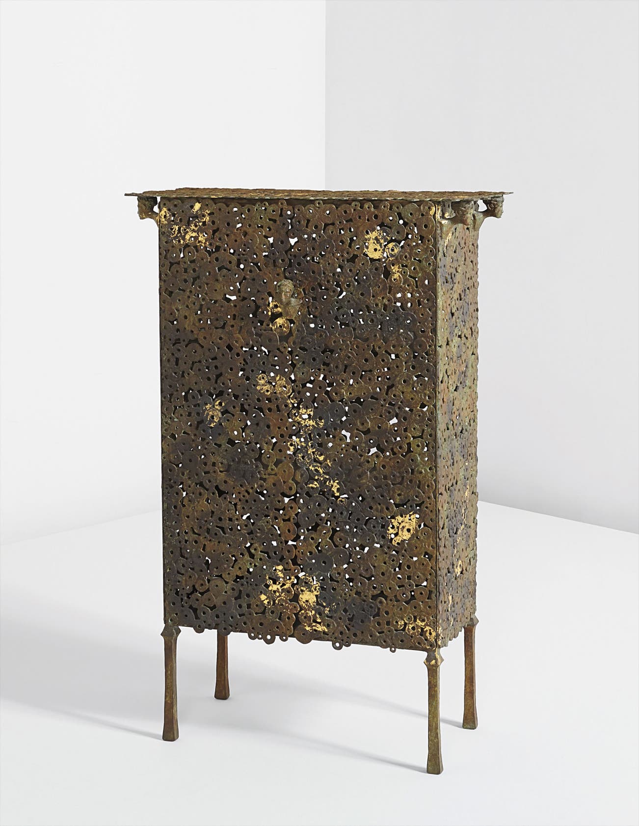 Swedish | 1957Swedish-born Ingrid Donat has lived and worked in Paris since 1975, when she moved there to study sculpture at the École des Beaux-Arts. Encounters with Sylva Bernt (the companion of André Arbus) and Diego Giacometti introduced her to the art of cast bronze furniture. Working in this most ancient of artistic media, and drawing inspiration from Art Deco design, Gustav Klimt patterning and tribal tattoos, Donat blends traditional sources to craft refreshingly original and evocative furniture that invites closer inspection.