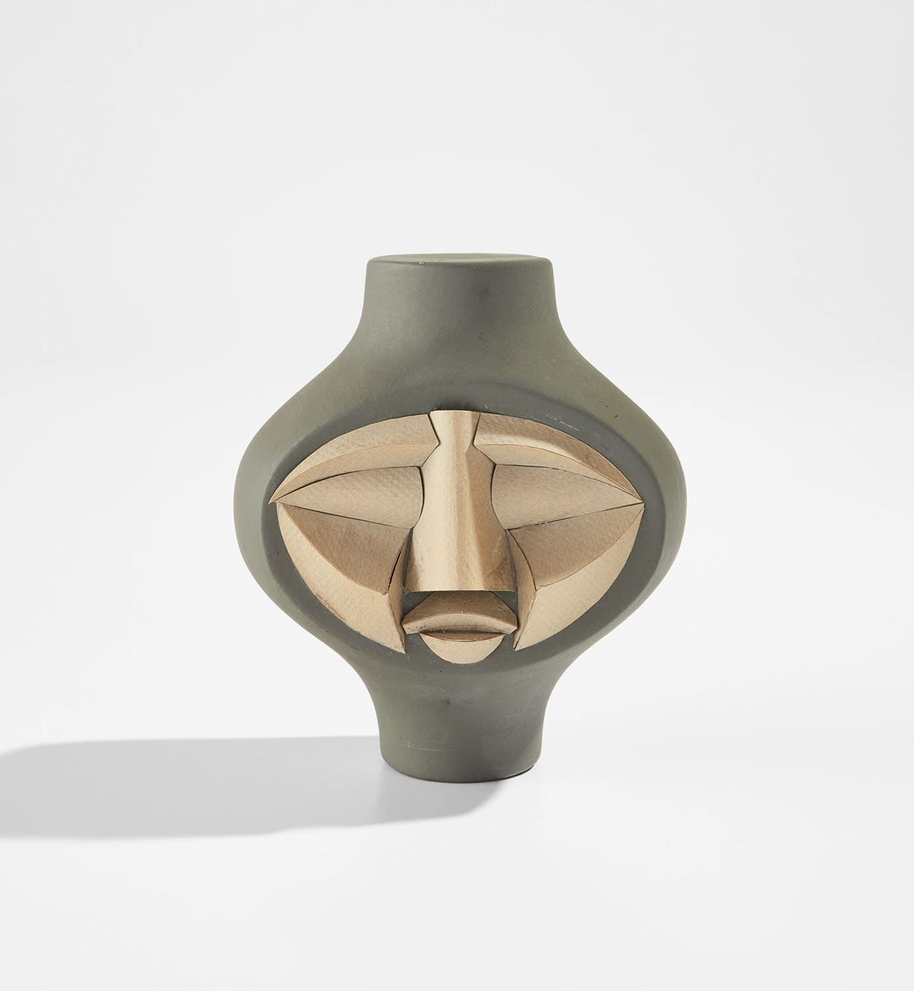 In 1947, American designer Irving Harper began working for the design firm George Nelson & Associates where he was assigned, among other projects, to the Howard Miller Clock Company account. Each year, Harper designed a range of wall and table clocks for the company, many of which are now considered icons of midcentury American design and are still in production. Beginning in 1963, Harper began to create artworks out of construction paper as an escape from his professional life. Up until 2000 he created more than 300 of these works, all of which he lived with for the rest of his life. The present lots are an example of his works in construction paper, and they are particularly important and rare because they also incorporate the ceramic bodies of clocks that he designed in 1953 for the Howard Miller Clock Company. There are only four known examples of such works. Harper transformed these ceramic frames by gluing facial features constructed in paper to the reverse of the clock bodies, creating these truly imaginative and fantastical forms.