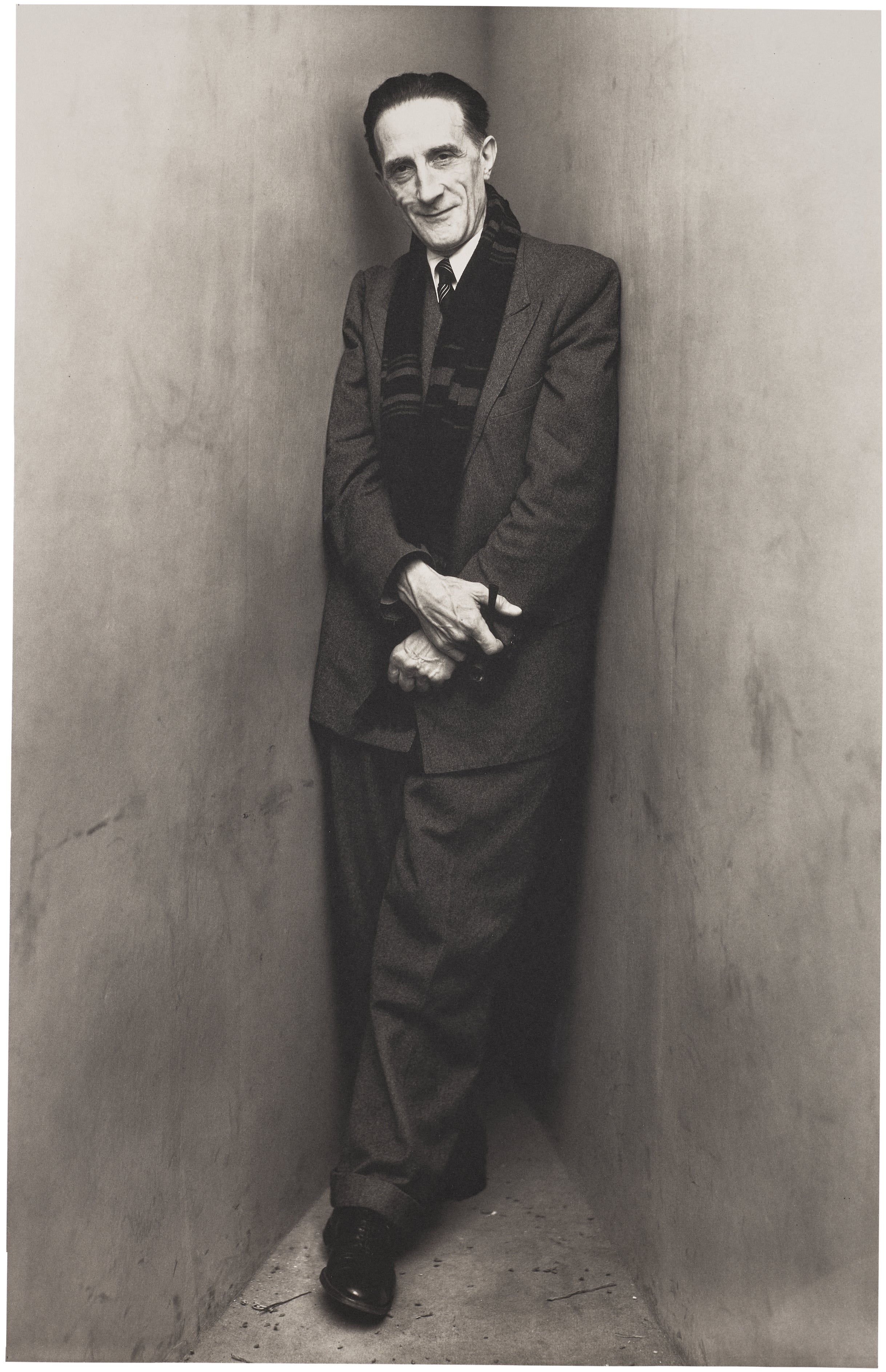 American | B. 1917 D. 2009Irving Penn was one of the 20th century’s most significant photographers, known for his arresting images, technical mastery, and quiet intensity. Though he gained widespread acclaim as a leading Vogue photographer for over sixty years, Penn remained a private figure devoted to his craft. Trained under legendary art director Alexey Brodovitch in Philadelphia, he began his career assisting at Harper’s Bazaar before joining Vogue in 1943, where editor and artist Alexander Liberman recognized Penn’s distinctive eye and encouraged him to pursue photography. Penn’s incomparably elegant fashion studies reset the standard for the magazine world, and his portraits, still lifes, and nude studies broke new ground. His 1960 book Moments Preserved redefined the photographic monograph with its dynamic layout and high-quality reproductions. In 1964, Penn began printing in platinum and palladium, reviving this 19th-century process to serve his own distinct vision. An innovator in every sense, Penn’s approach to photography was endlessly adventurous. Few photographers of his generation experimented as widely with both conventional and historic print processes, and none achieved Penn’s level of excellence in all.