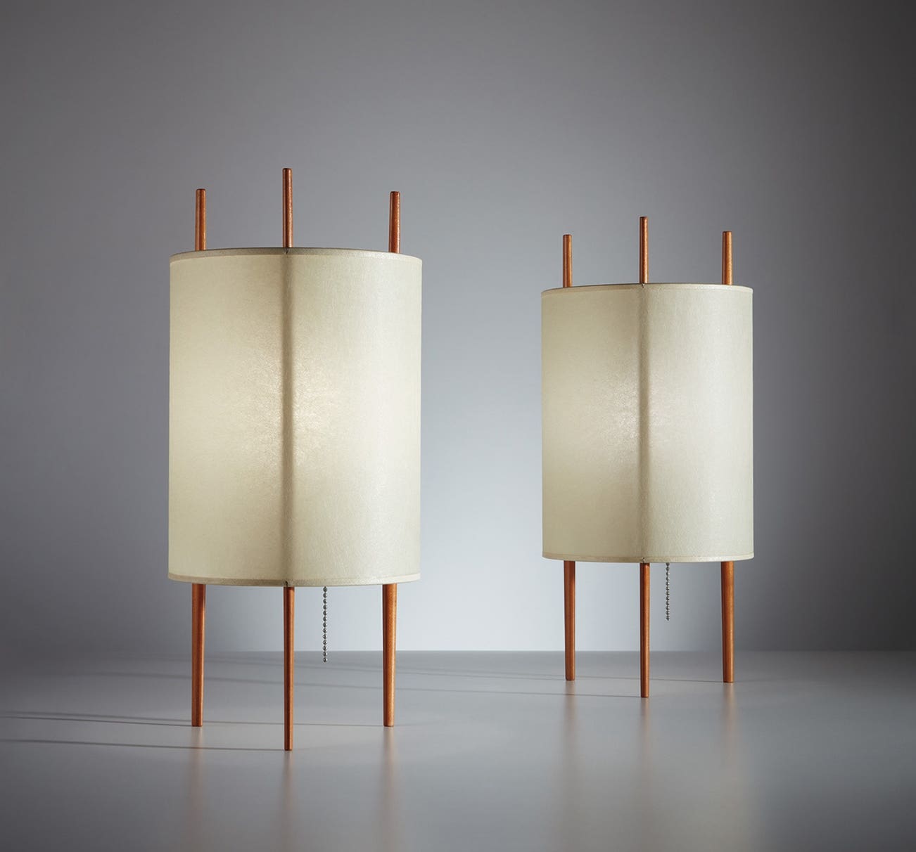 Pair of "Three-Legged Cylinder" table lamps, model no. 9