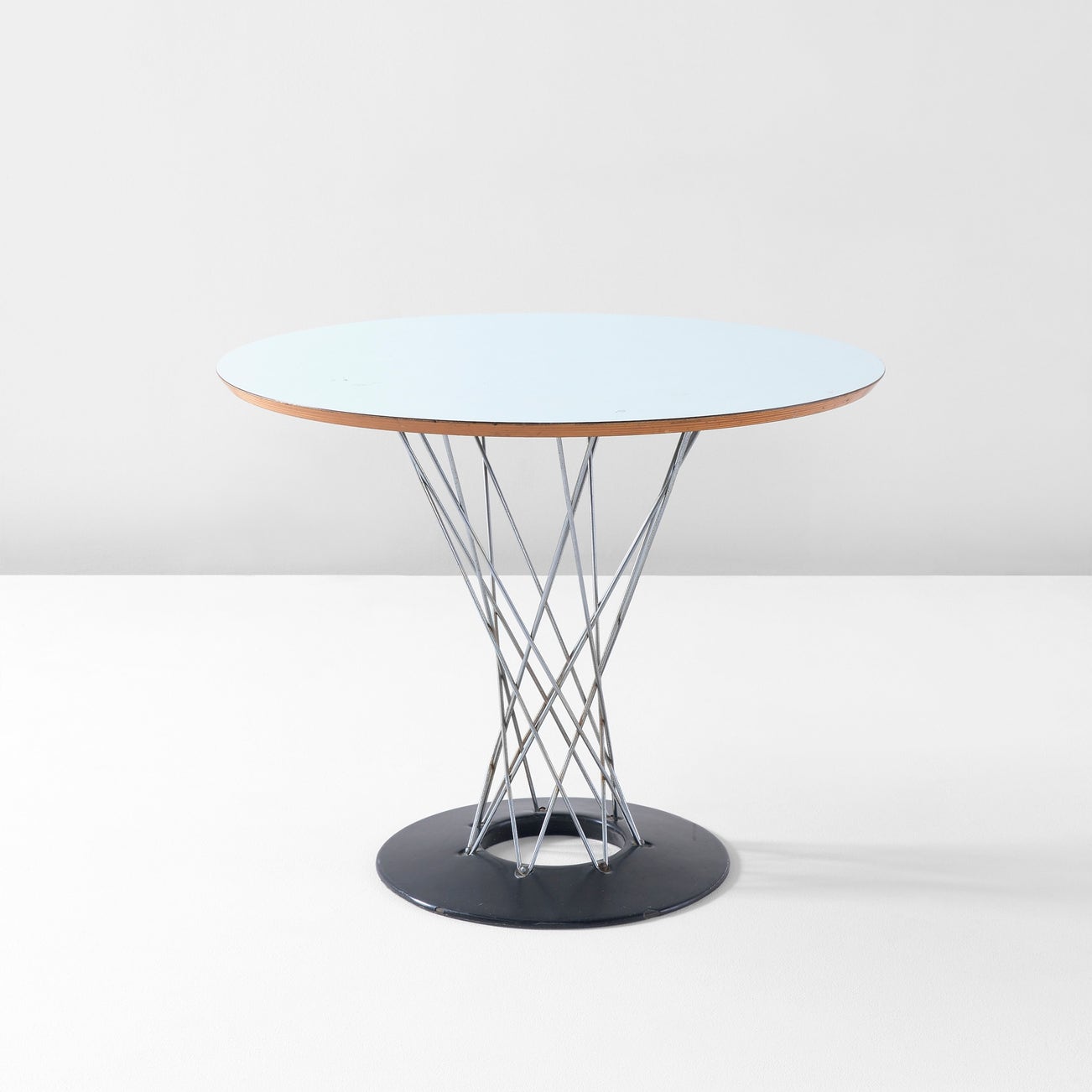 Plastic laminate, birch plywood, chrome-plated steel, enameled steel.