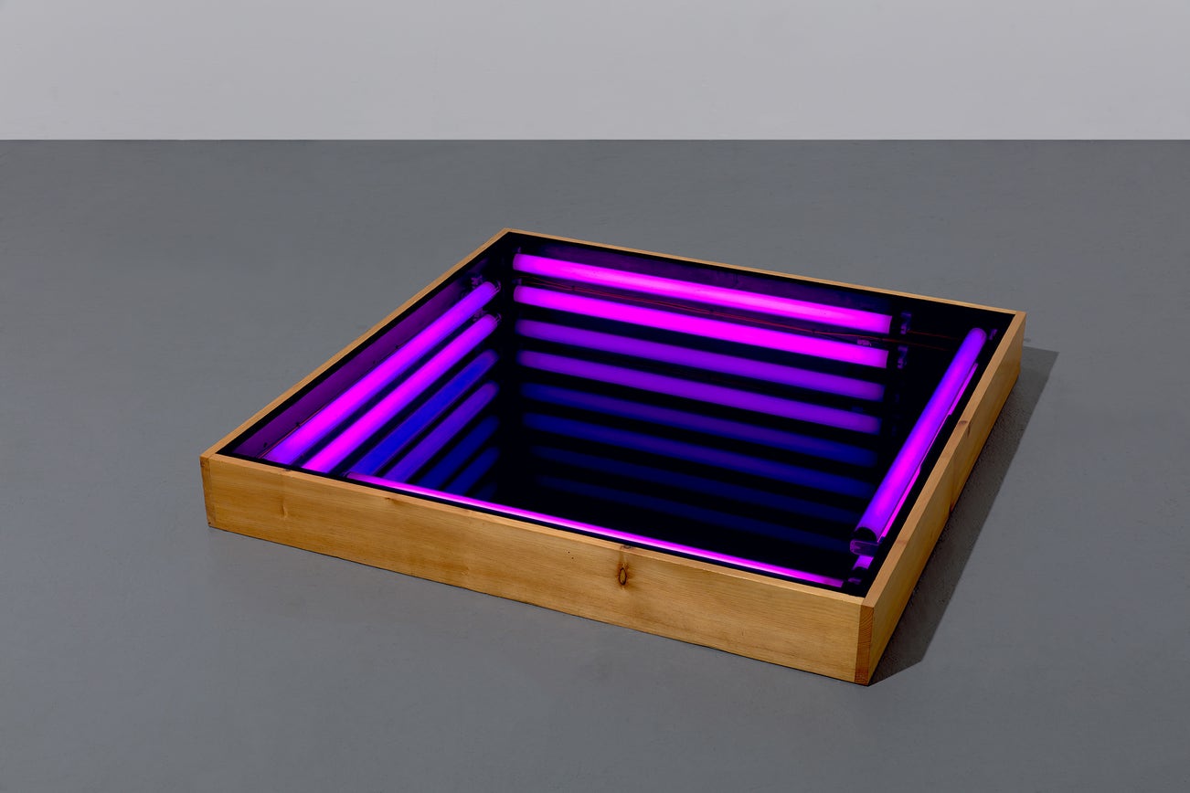 neon, mirror, one way mirror, wood and electrical components