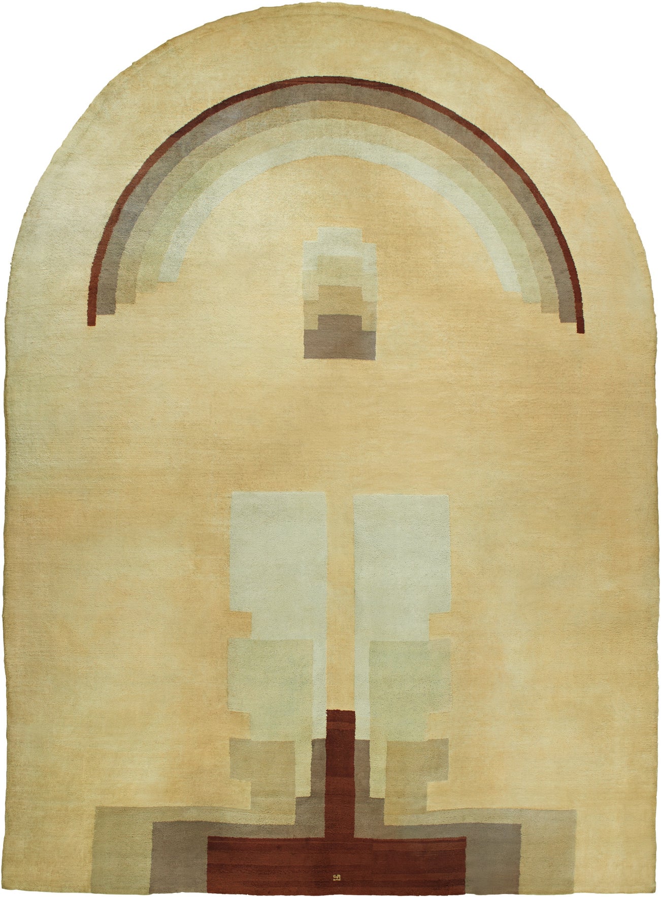 Ivan Da Silva Bruhns is renowned for his seamless weaving together of pre-Columbian motifs, Modernist rationalism, and French Art Deco luxury. Born in Paris to Brazilian parents, Da Silva Bruhns first studied medicine and painting before entering into the textile business; the dual parts of his identity--both French and Latin American, scientist and artist--are unified in his carpets. He began making carpets piece-by-piece with a weaver north of Paris, and by 1925 he had established a full factory in the suburb of Savigny-sur-Orge, as well as a showroom in Paris. After being discovered by Louis Majorelle just before 1920, Da Silva Bruhns worked frequently with top designers like Ruhlmann and Jules Leleu, creating carpets for the most complex and influential interiors of the period.