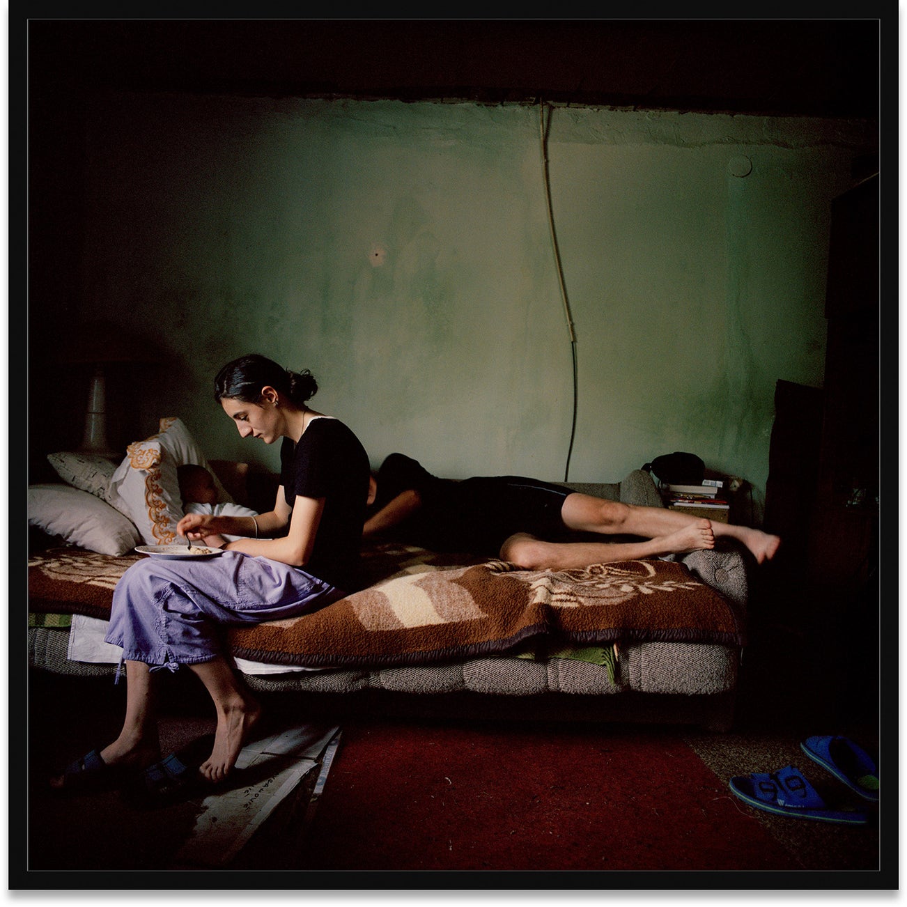This photograph is from Returning Home – Croatia, a series documenting the lives of Croatian Serbs as they struggle to return to their homes in Croatia. The image depicts Slavica Eremic feeding her baby son Nikola while her husband Serbian Nebojsa sleeps. 21-year-old Slavica married Serbian when she was 19. Serbian had returned to Croatia after several years of exile in Serbia only to find his family home inhabited by a Bosnian refugee. The young family now lives in what used to be Serbian’s grandmother’s house.