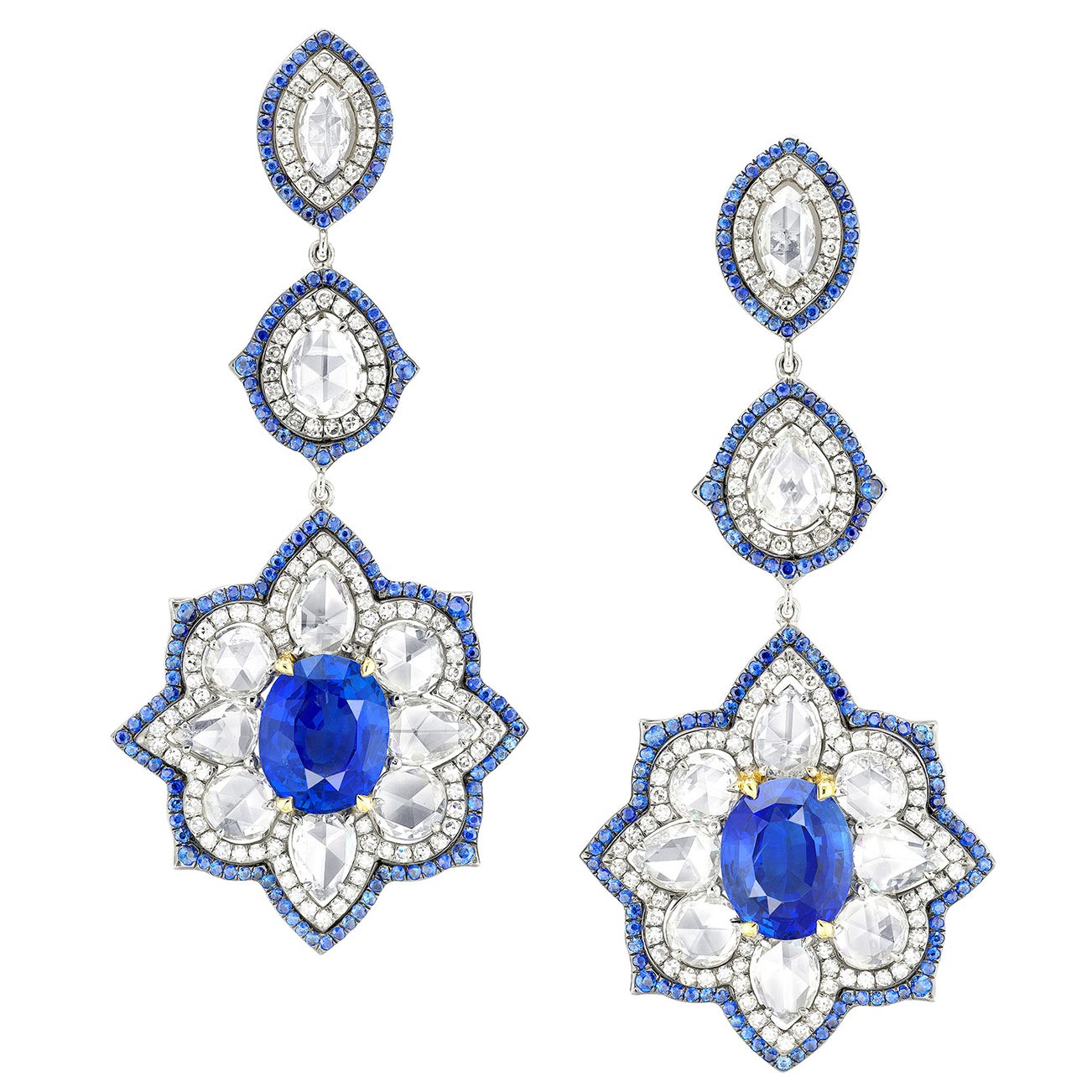 - Two oval-shaped sapphires, 5.04 and 5.35 carats respectively