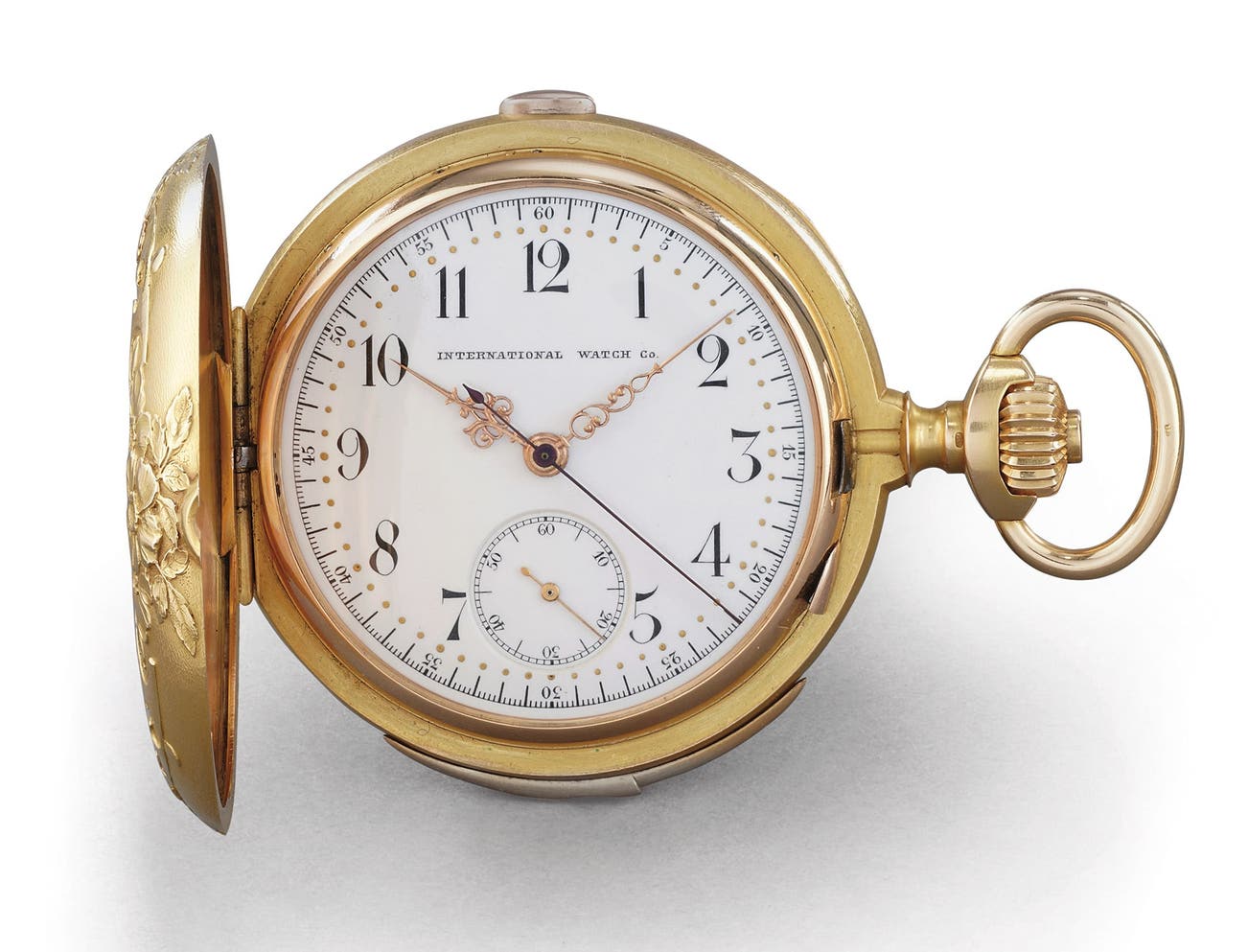 Accompanied by IWC fitted wooden presentation box bearing the inscription "Repetition a Minutes, International Watch Co., Grand Prix Milan 1906, Chronographe".