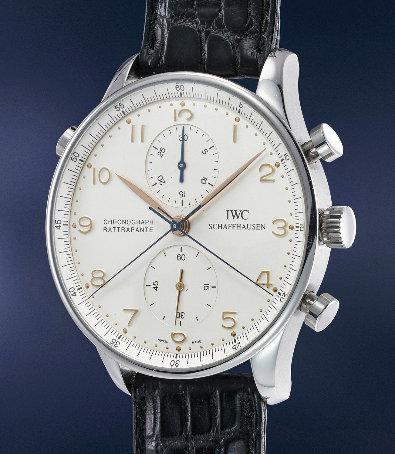 IWC’s split seconds chronograph was born, first into the Pilot Doppel Chronograph and rapidly into what was the world’s most complicated timepiece at the time: The Destriero Scafusia featuring a perpetual calendar, minute repeater, tourbillon and split seconds chronograph.