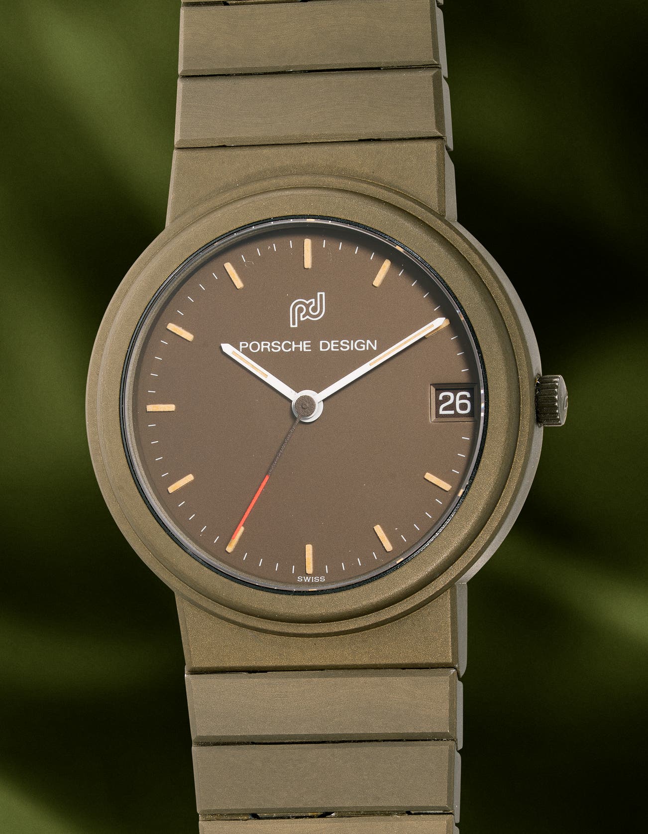 • Although the overall profile and appearance are similar to reference 3517, the dial of the present 1983 example is noticeably more minimalistic. It features only the Porsche Design branding, with a stylised "pd" logo followed by "PORSCHE DESIGN" in block letters at 12 o’clock. No text appears below the date window, further emphasising the clean and understated design.