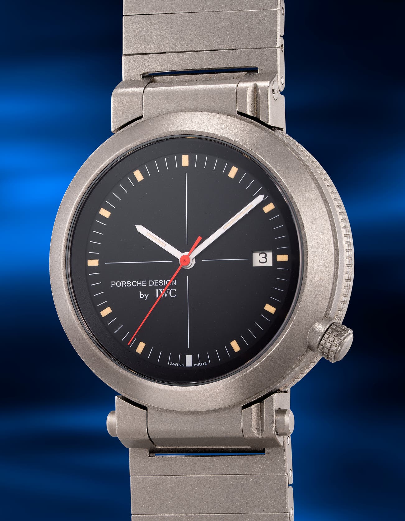 - Stepping into the 1990s, the Compass Watch faced a revamp to the appearance. Instead of using aluminium in the reference 3510, the newly introduced reference 3511 used titanium for the caseband. IWC also changed the layout of the dial, with a simplified block text logo writing “Porsche Design by IWC” at the 8 o’clock position, instead of the full company name. The date is now in alternate colour to the dial, in white instead of black. In general, the appearance is more clean and eye-catching.