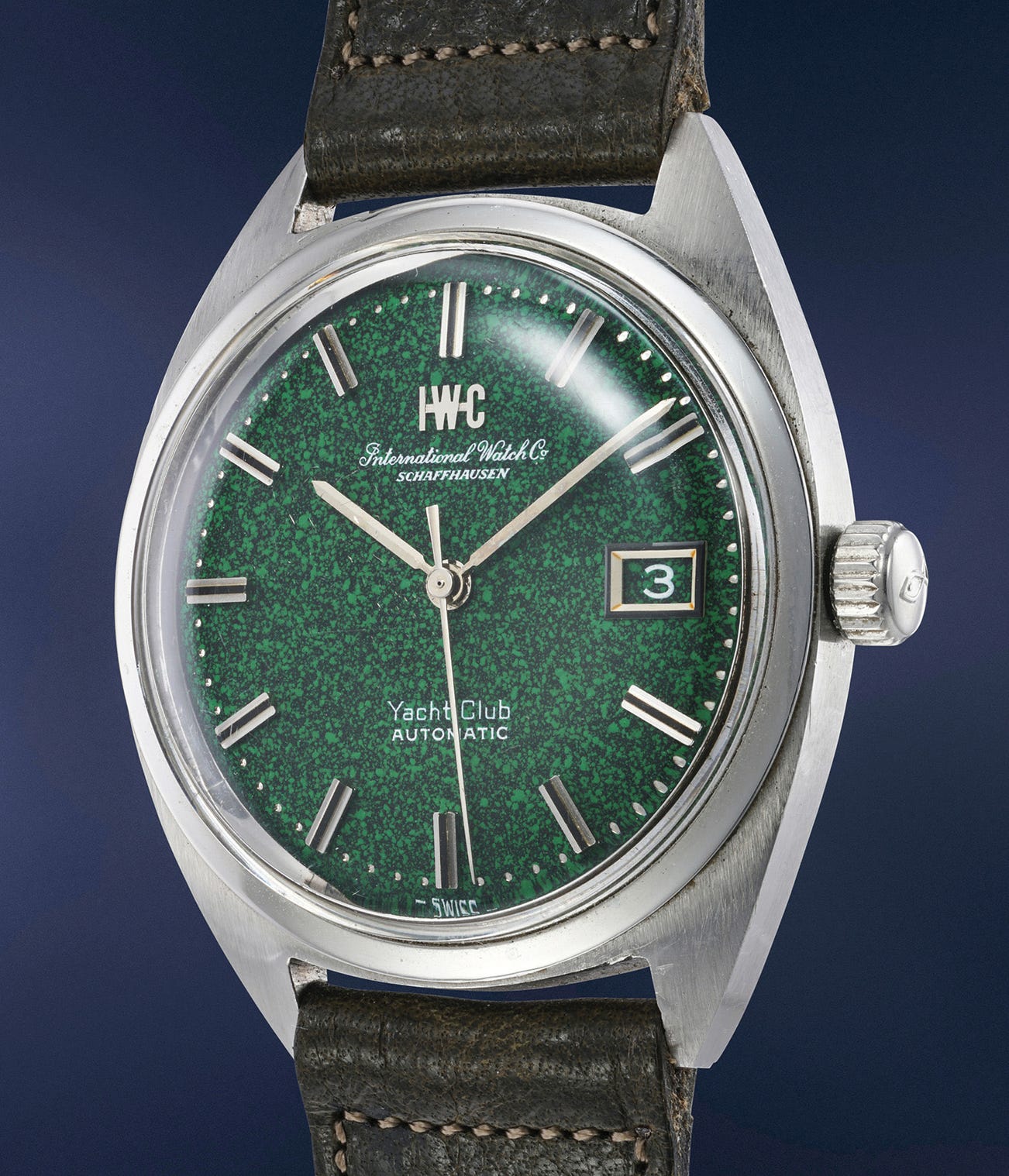 "The two dials are highly rare; They are a design experiment from IWCs dial supplier. Only a few dials of the two variants exist. They were available in green and blue. Additionally, there was the corresponding date disc in the same colour. Officially, Yacht Club watches with these dials were never advertised. This makes the two pieces really very special.”