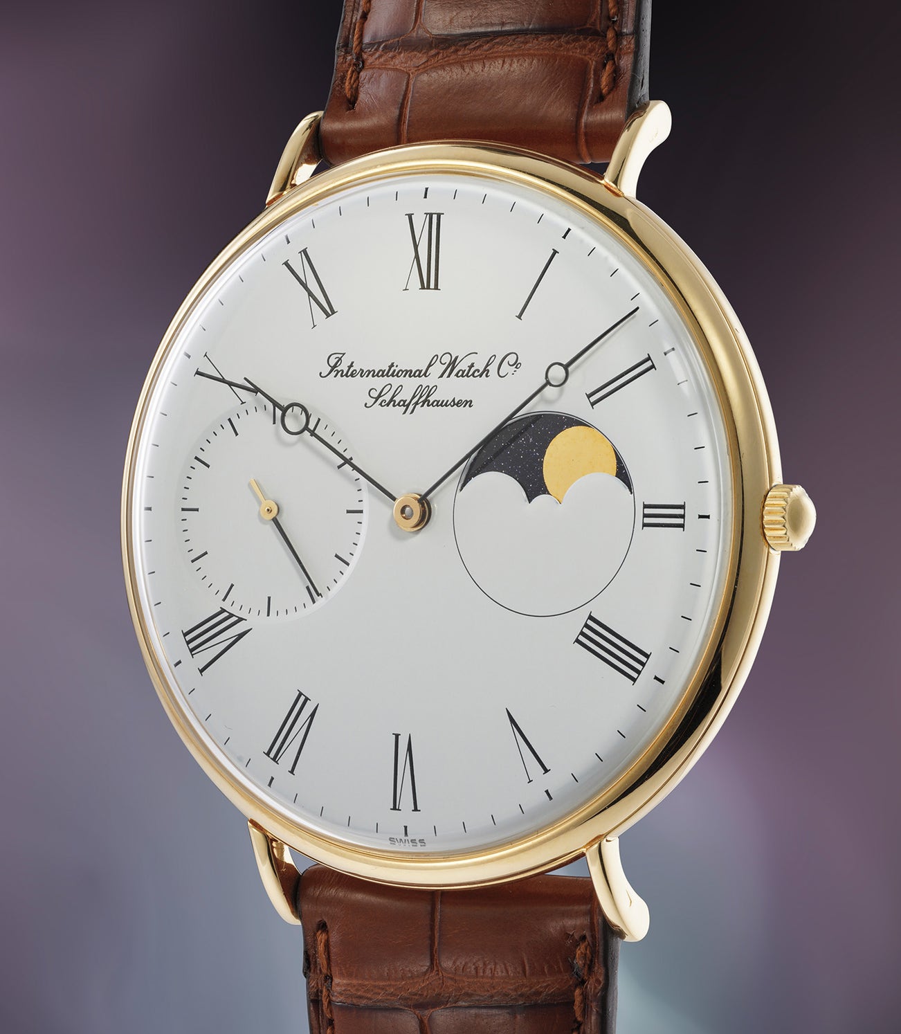A surprising and historically important yellow gold wristwatch with moonphase display, formerly owned by Günter Blümlein