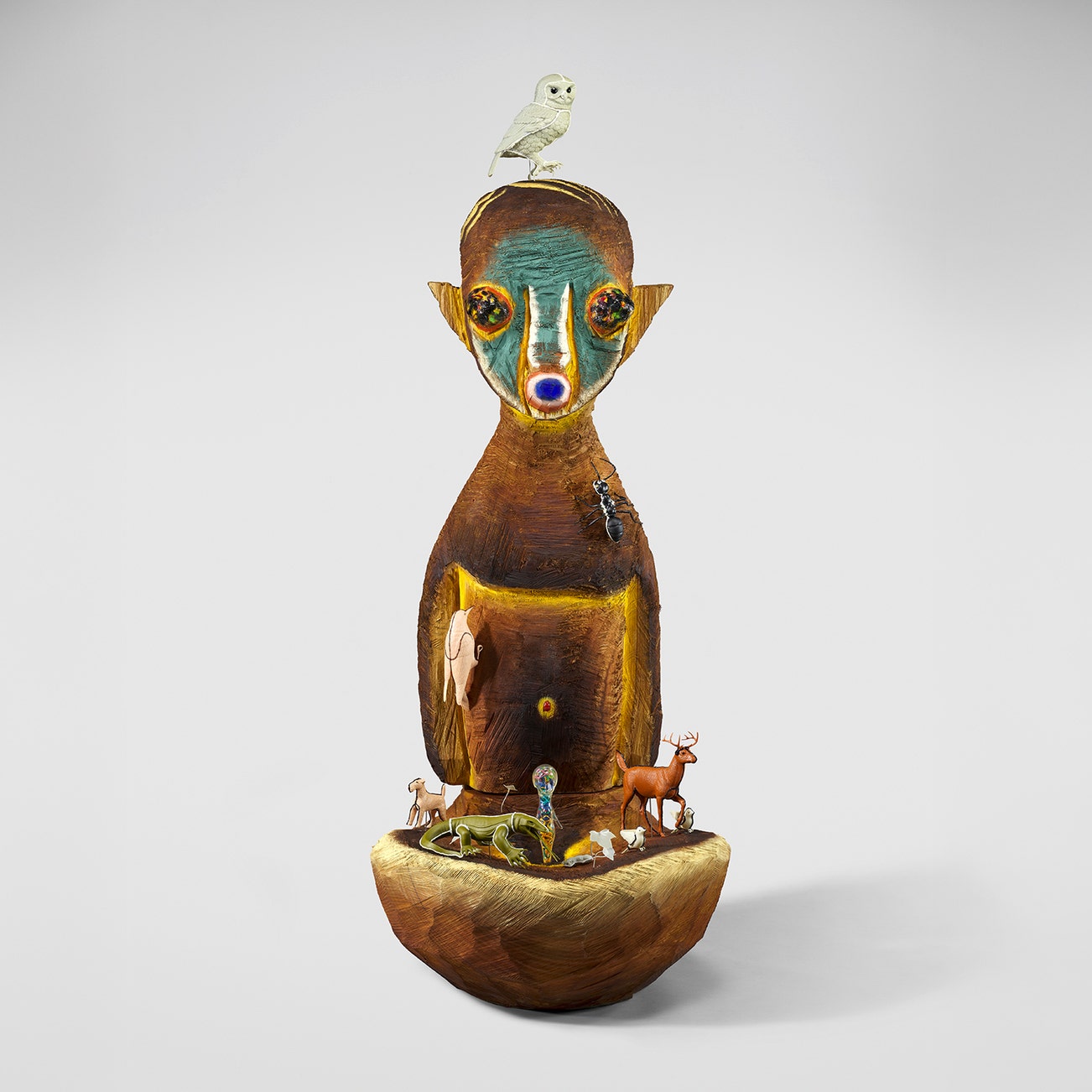 wood, plastic model, soft vinyl, stone, thread, acrylic paint, stainless steel