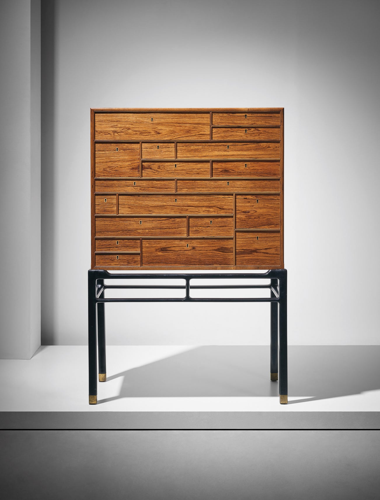 Executed by master cabinetmaker William Christensen for Illums Bolighus, Copenhagen, Denmark. Reverse with retailer's metal label impressed ILLUMS BOLIGHUS/KØBENHAVN.