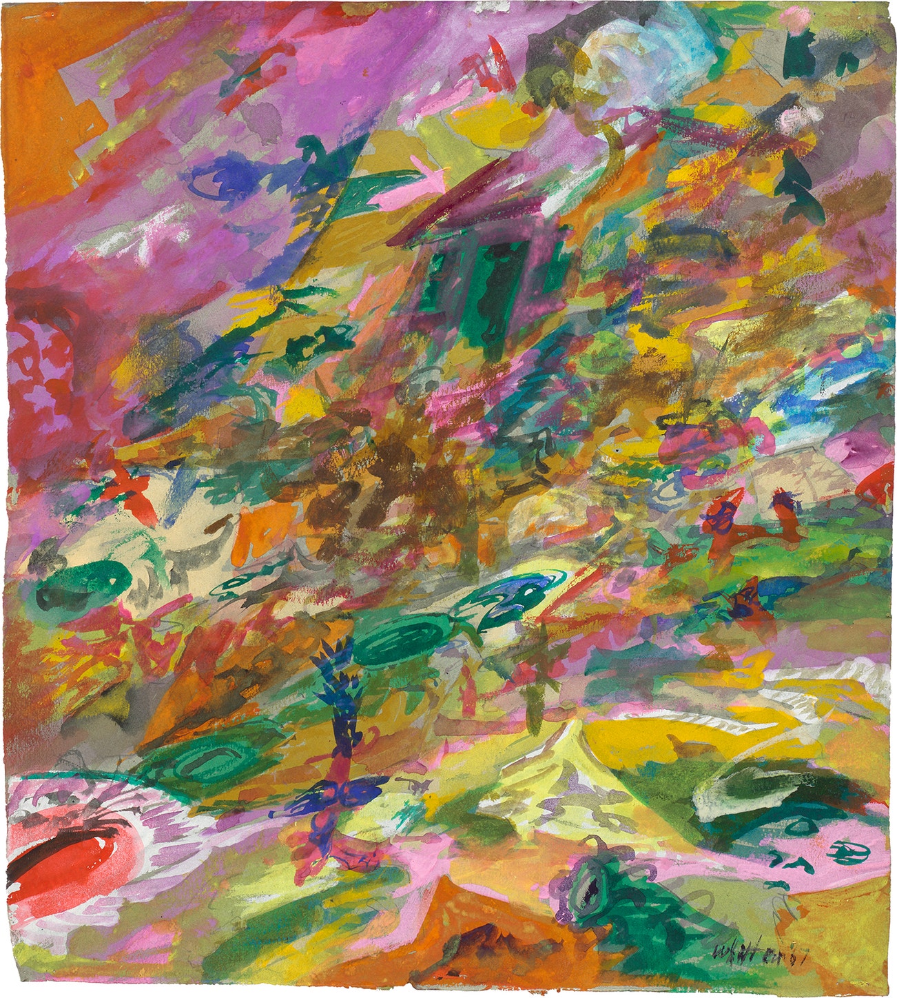 American | B. 1939 D. 2018Jack Whitten, who passed away at age 78 in January 2018, is celebrated for his influential approach to painting. While initially aligned with the New York circle of Abstract Expressionists in the mid-1960s, particularly Willem de Kooning, Whitten became known for his focus on the experimental aspects of process and technique in painting. Fascinated with the materiality of painting at a time when the medium was deemed “dead”, Whitten in the early 1970s fervently sought an alternative approach to art making. He achieved his artistic breakthrough with what he called the “developer”, a proprietary floor-based tool that allowed him to quickly spread a layer of acrylic paint onto the canvas with a single gesture – resulting in his signature slab paintings. For the next five decades, Whitten relentlessly pushed his practice to new heights – bridging gestural abstraction with process art, mechanical automation with intensely personal expression.