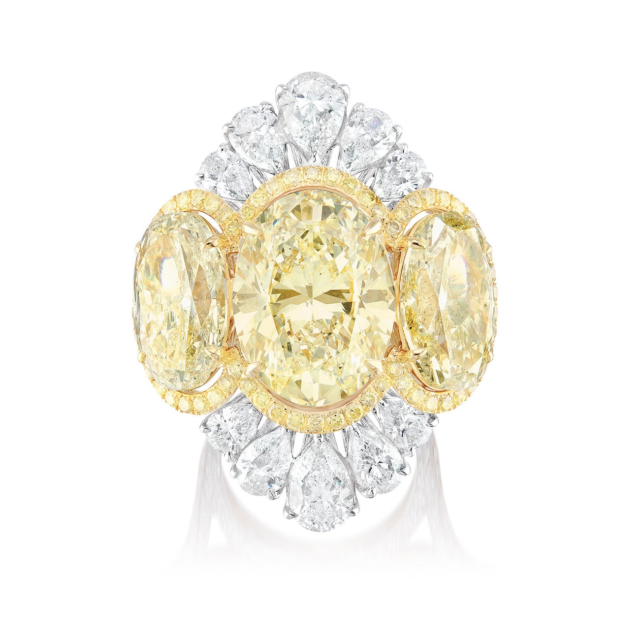 Three oval-shaped diamonds, 8.02, 8.04 and 16.12 carats respectivelyTen pear-shaped diamonds, 5.59 carats total Sixty-two brilliant-cut yellow diamonds and two hundred brilliant-cut diamonds, 3.06 carats total18K white gold and goldSigned HermitageAccompanied by a certificate of authenticity from Jacob & Co.<em>GIA Report: Y to Z colour, SI2 clarity</em> <em>GIA Report: W to X colour, VS2 clarity</em> <em>GIA Report: U to V colour, VS2 clarity</em>