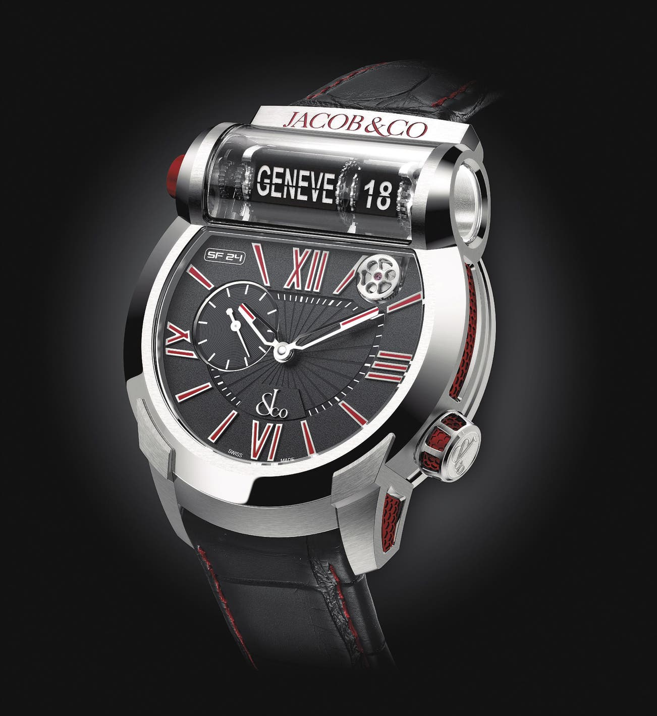 The Epic SF24 embodies the dream of Jacob Arabo, the founder and Chairman of Jacob & Co, to transport the traveller back in time. Indeed, the movements of the flaps are reminiscent of billboards from train stations and airports, the preferred locations of globetrotters. The flaps represent also a technical achievement of their own as they require 163 miniaturized components (473 in total for the movement) to provide a unique and instantaneous experience.