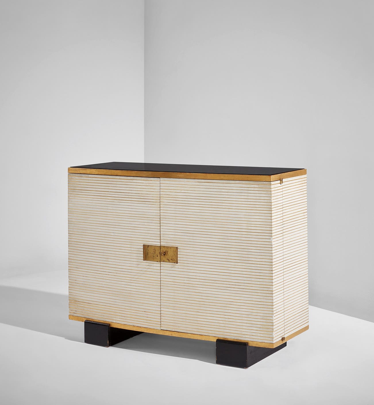 Painted wood, brass, mirrored glass.