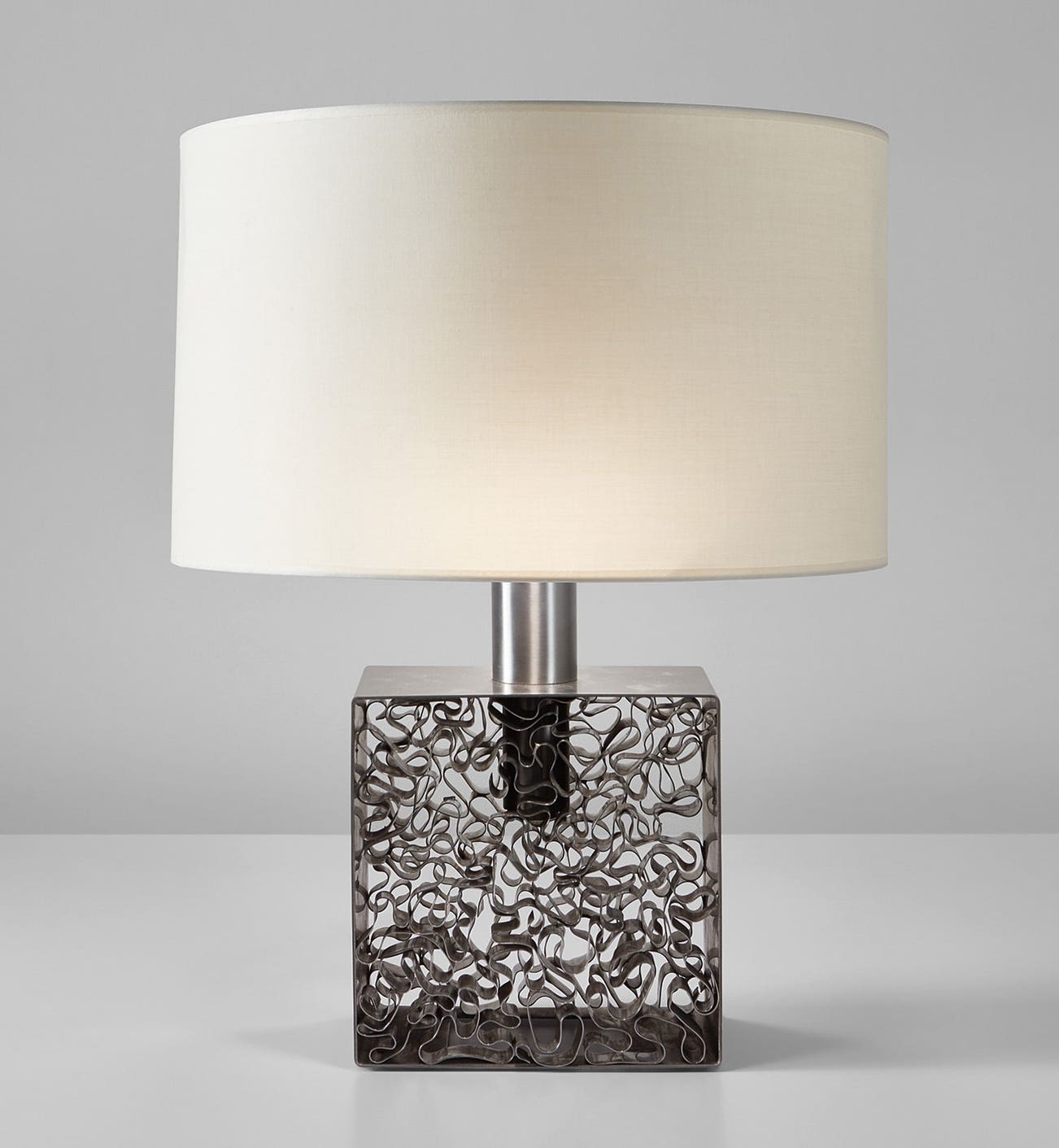 Chromium-plated steel, fabric shade.