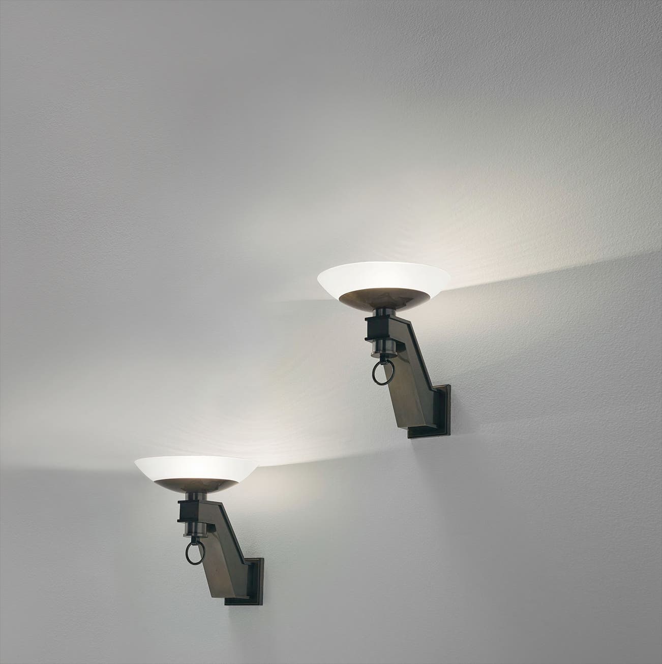 Patinated bronze, opaque glass.