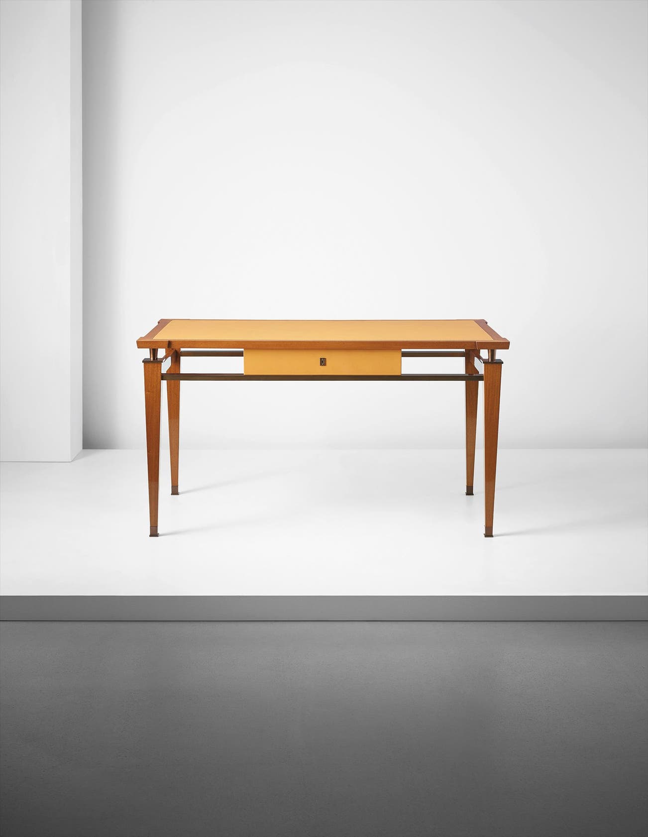 Brass, mahogany, leather.